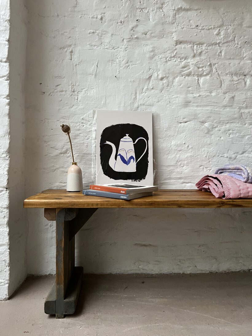 Ursprünglich ist Jaro eine typische Sitzbank, wie sie früher oft im Eingangsbereich von Bauernhäusern oder sogar draußen vor den Türen zum Sitzen genutzt wurden. Jaro wurde von einem Prager Restaurator aufbereitet und mit Wachs versiegelt.