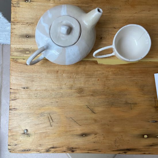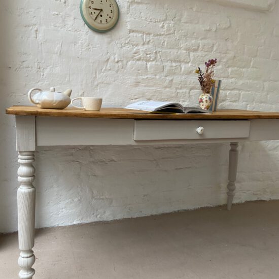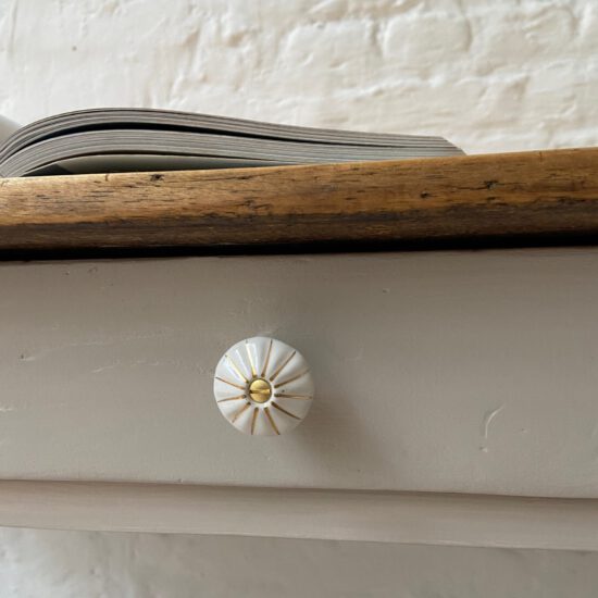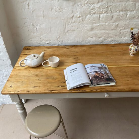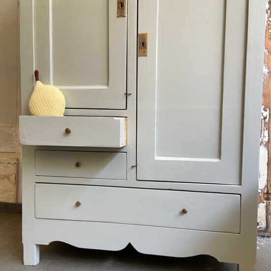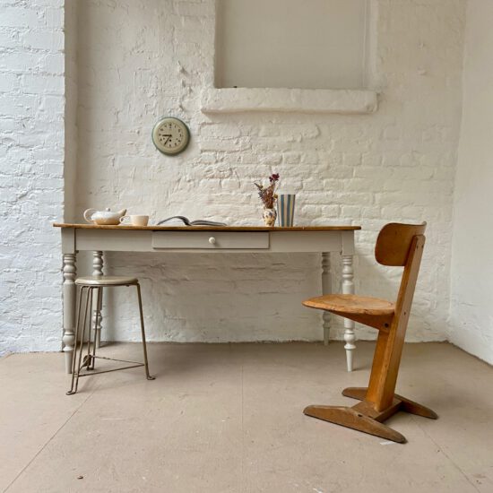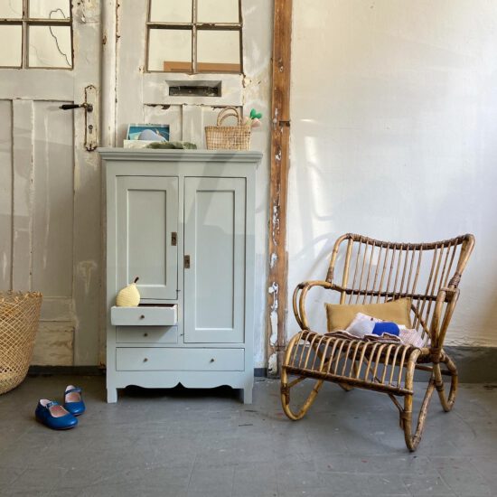Wir haben Joan restauriert, grundiert und zwei Mal lackiert. Die Farbe ist ein schönes blaugrau von Farrow and Ball.