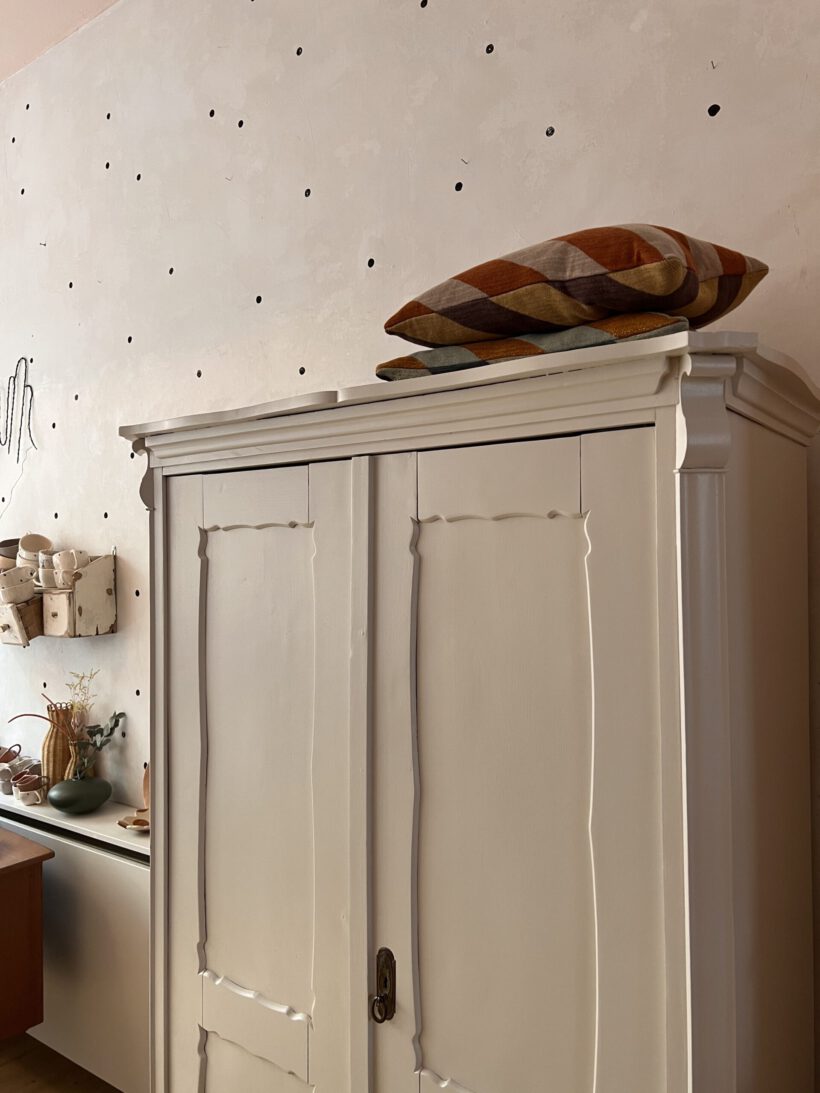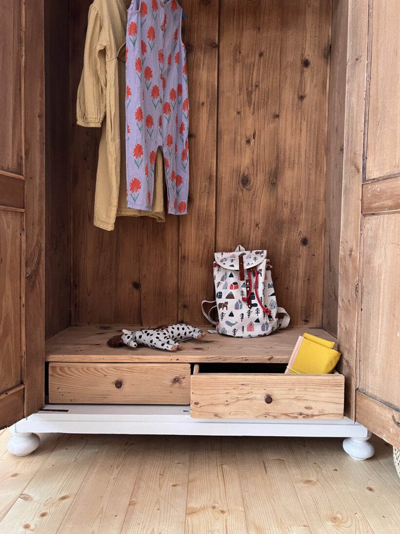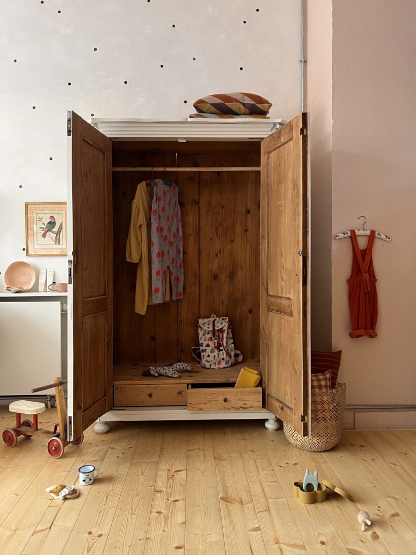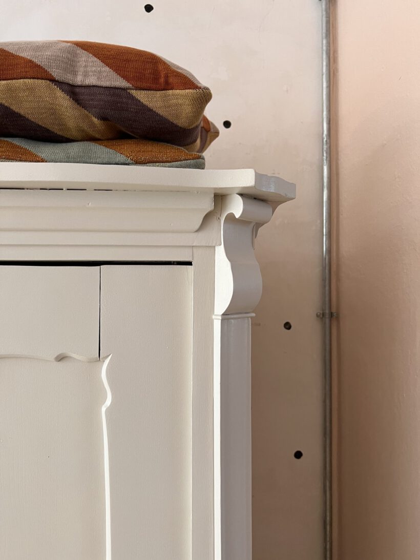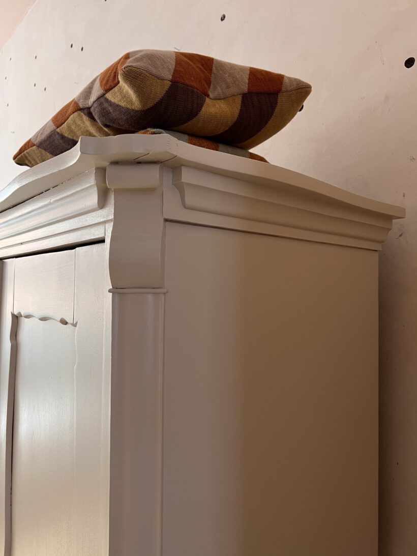 …was ein Träumchen an Kleiderschrank. Johánna ist eine ganz besondere, ihre Türen und Krone wurde liebevoll in Verzierung handgeschnitzt und so zu einem absoluten Unikat. Innen hat sie zwei zauberhafte Schubladen, was selten im Innenleben der Schränke vorkommt und einfach sehr charmant ist.