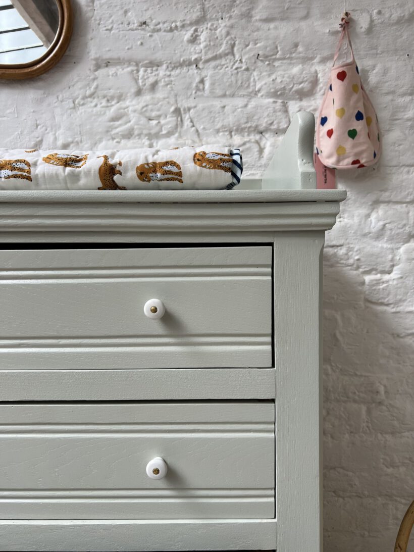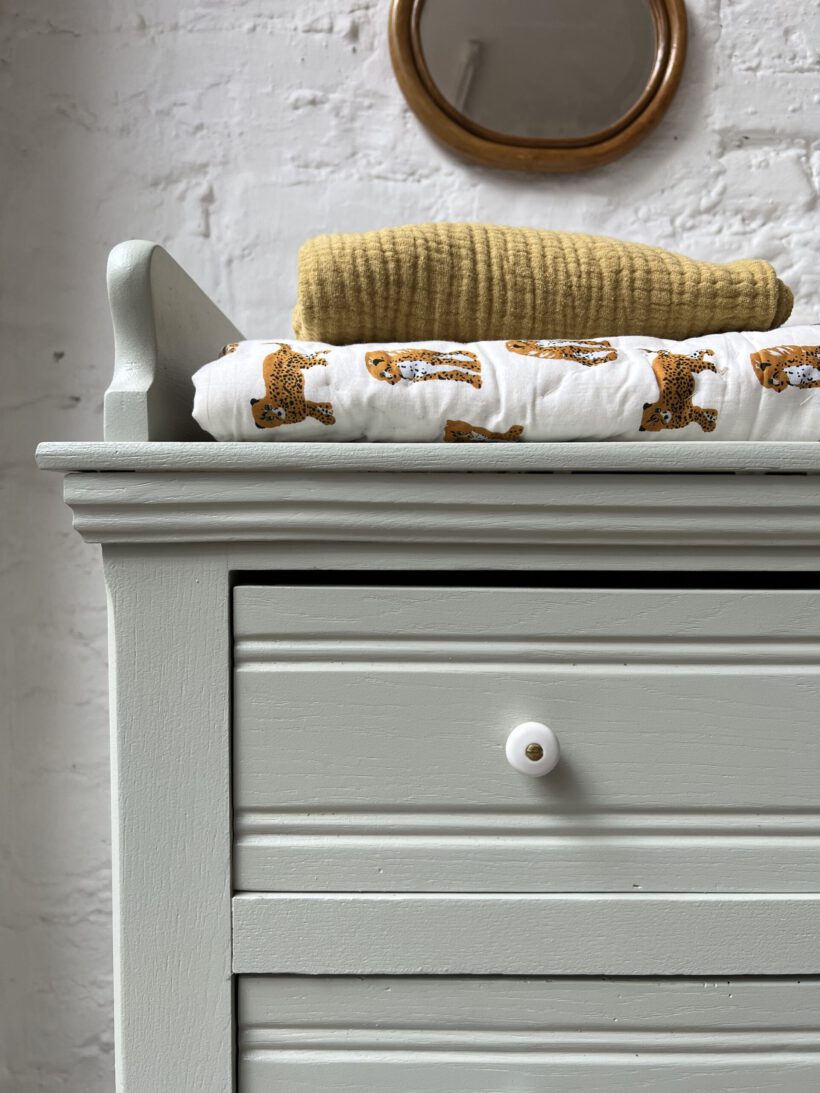 Jolie eignet sich (neben ihrer Ursprungsfunktion – Kommode) auch perfekt als Wickelkommode. Sie hat mit ihren 88 cm eine sehr gute Höhe, die quasi dem Wickelkommoden Standard von 90 cm in der Höhe entspricht. Auch die Schubladen sind beliebt für Babyzimmer. Einfach perfekt.