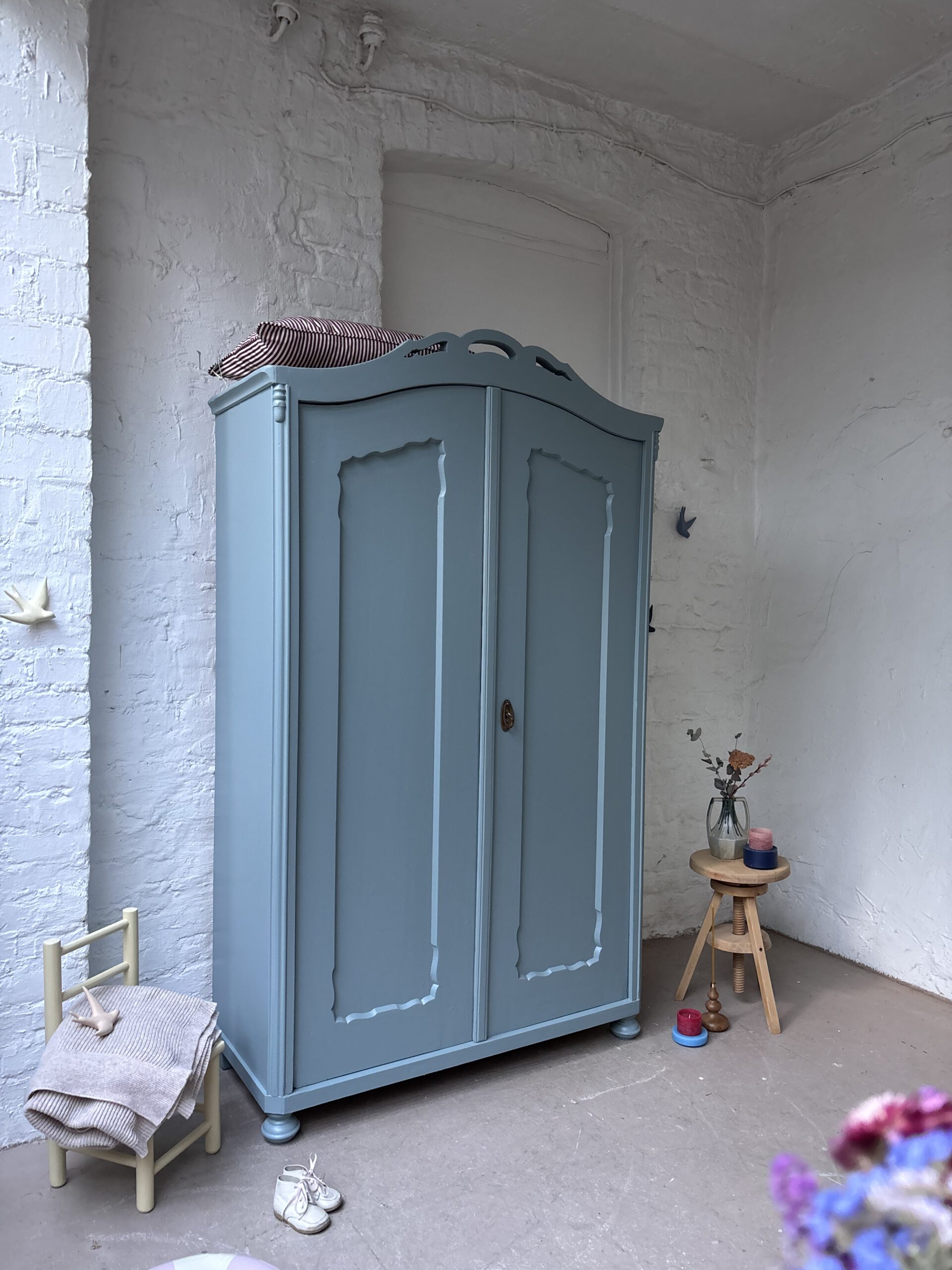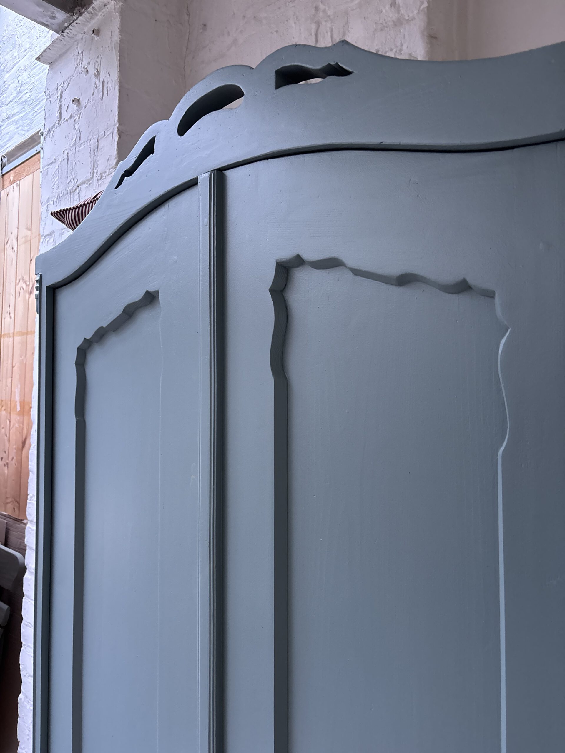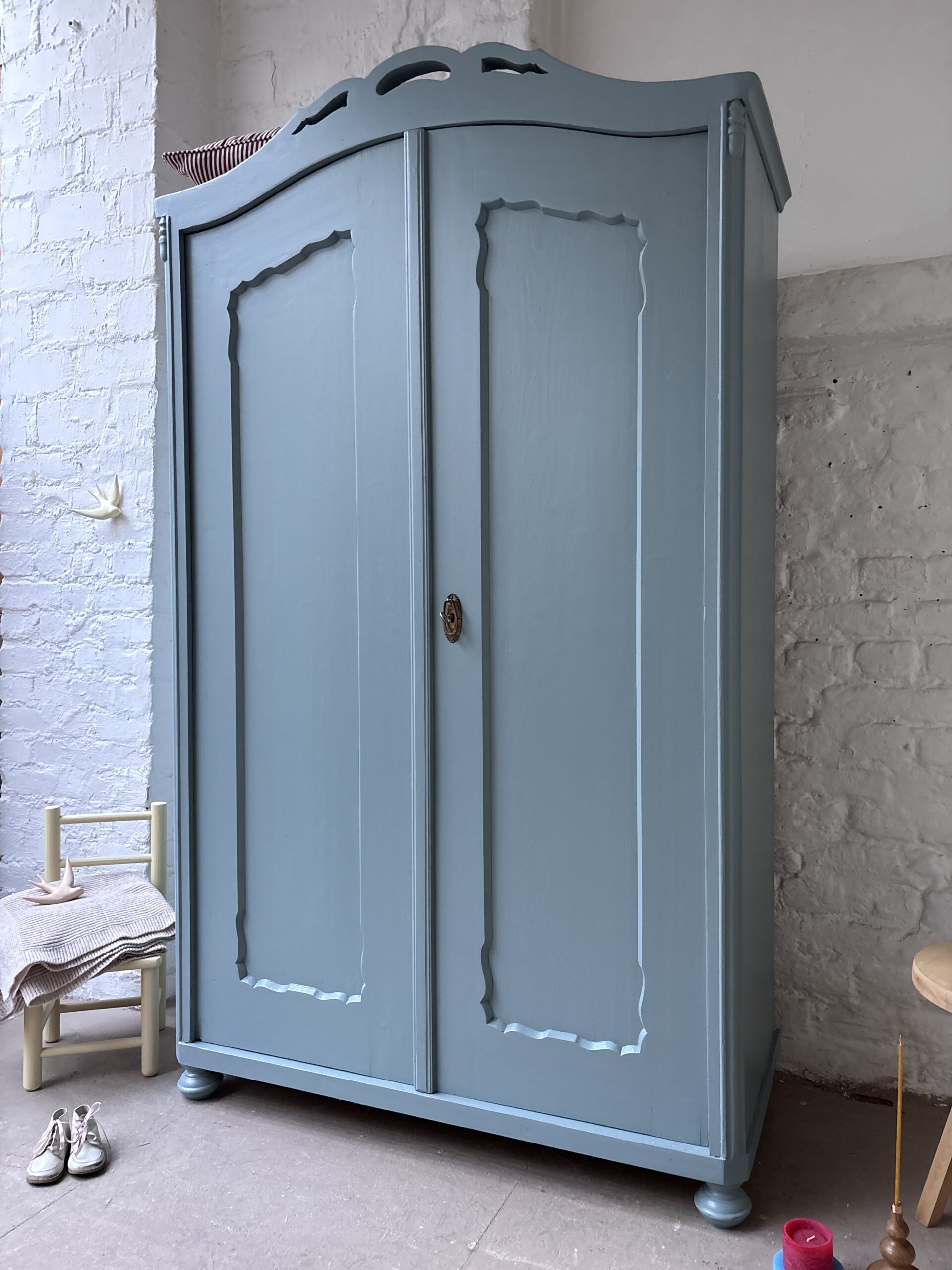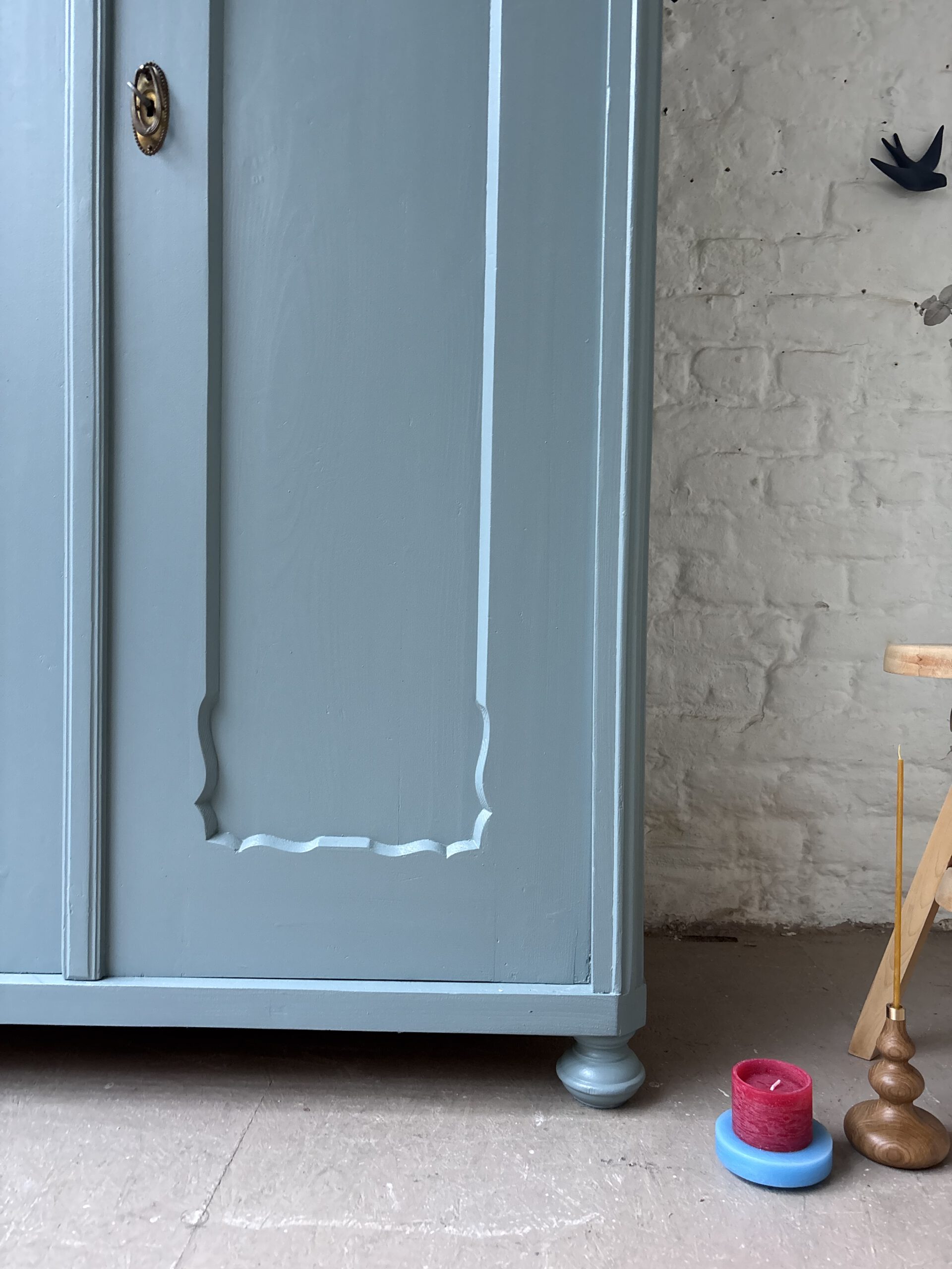ein wunderschöner antiker Schrank aus Prag in zeitlosem mittelblau von Farrow and Ball.