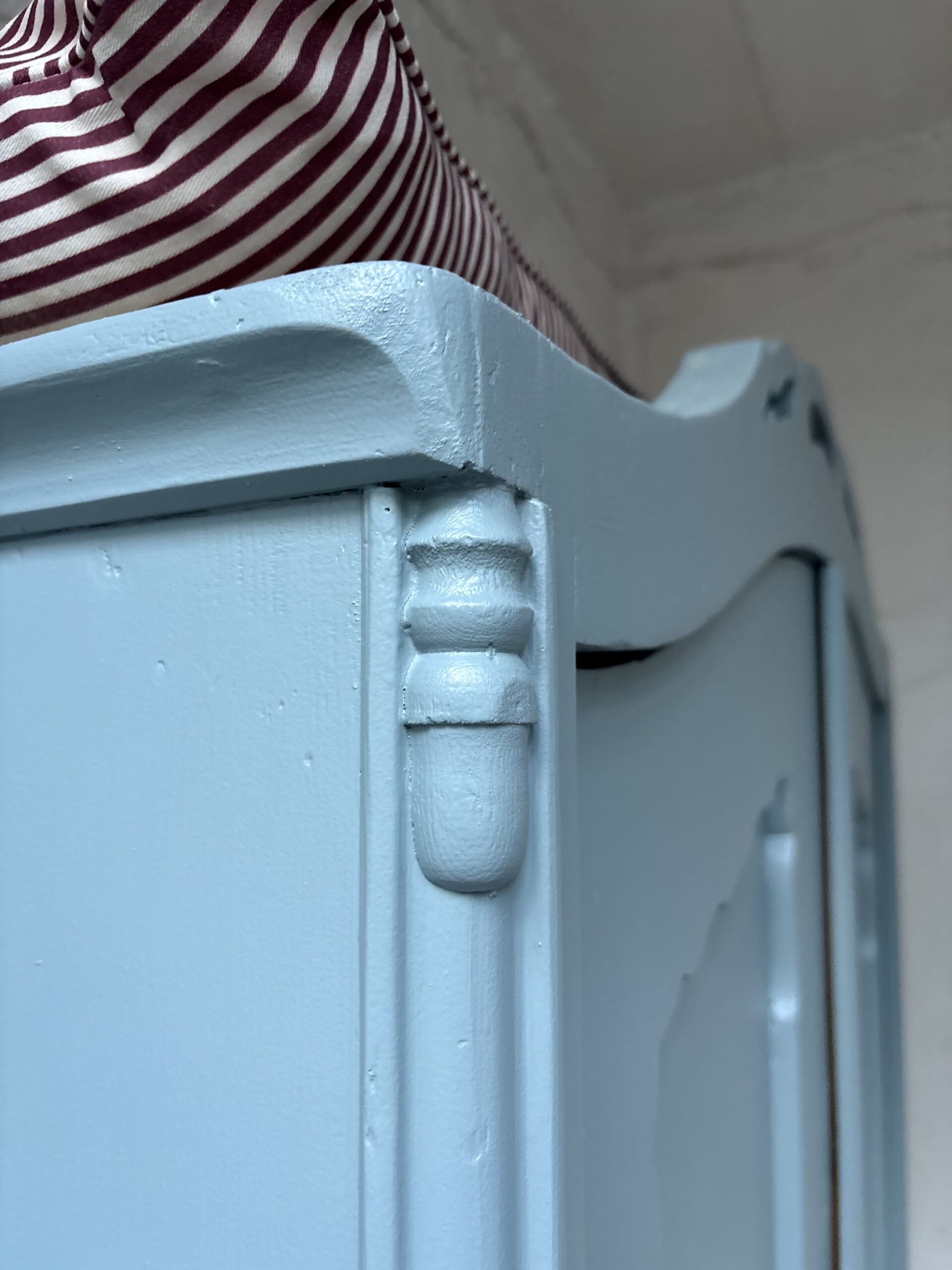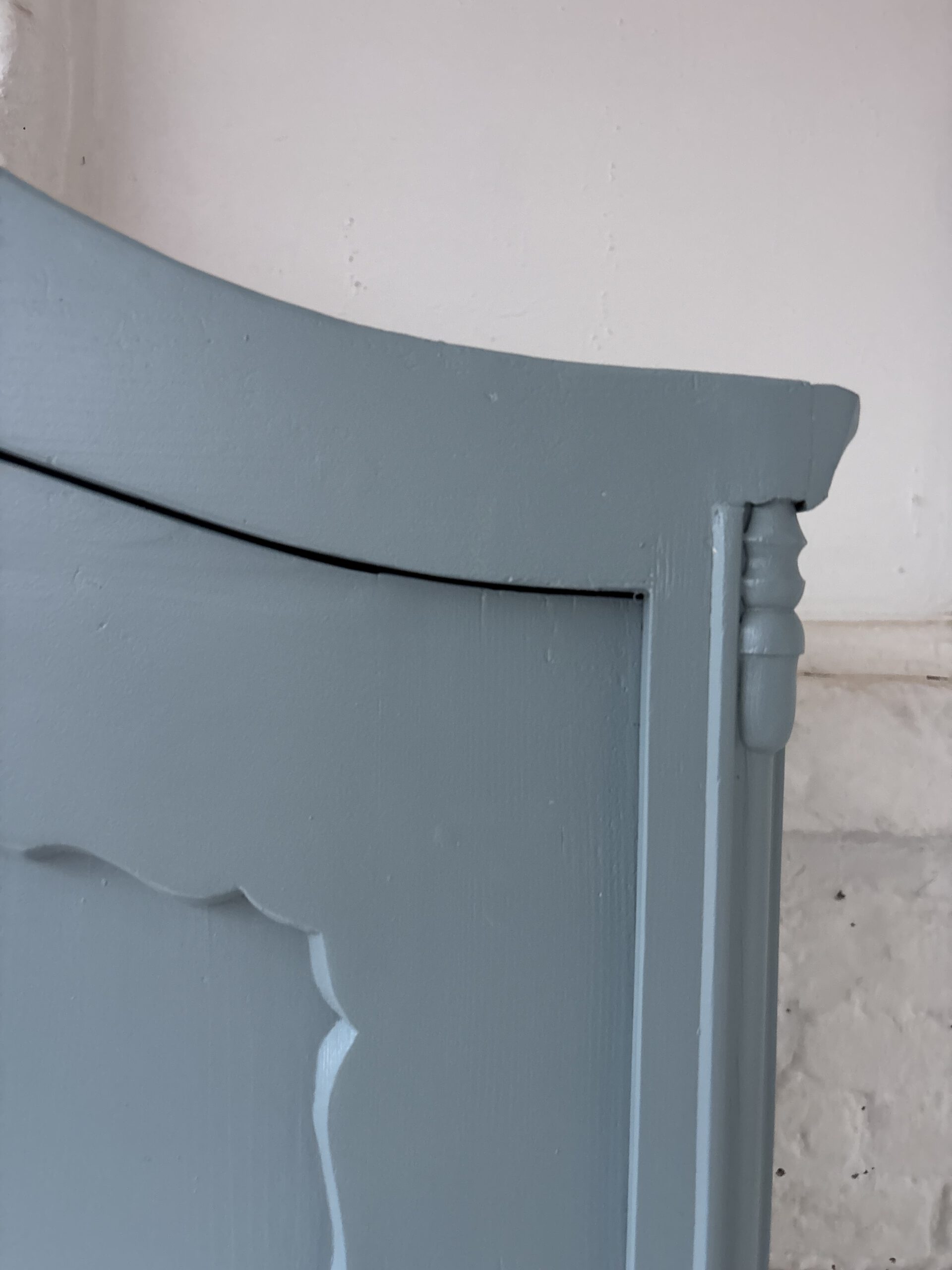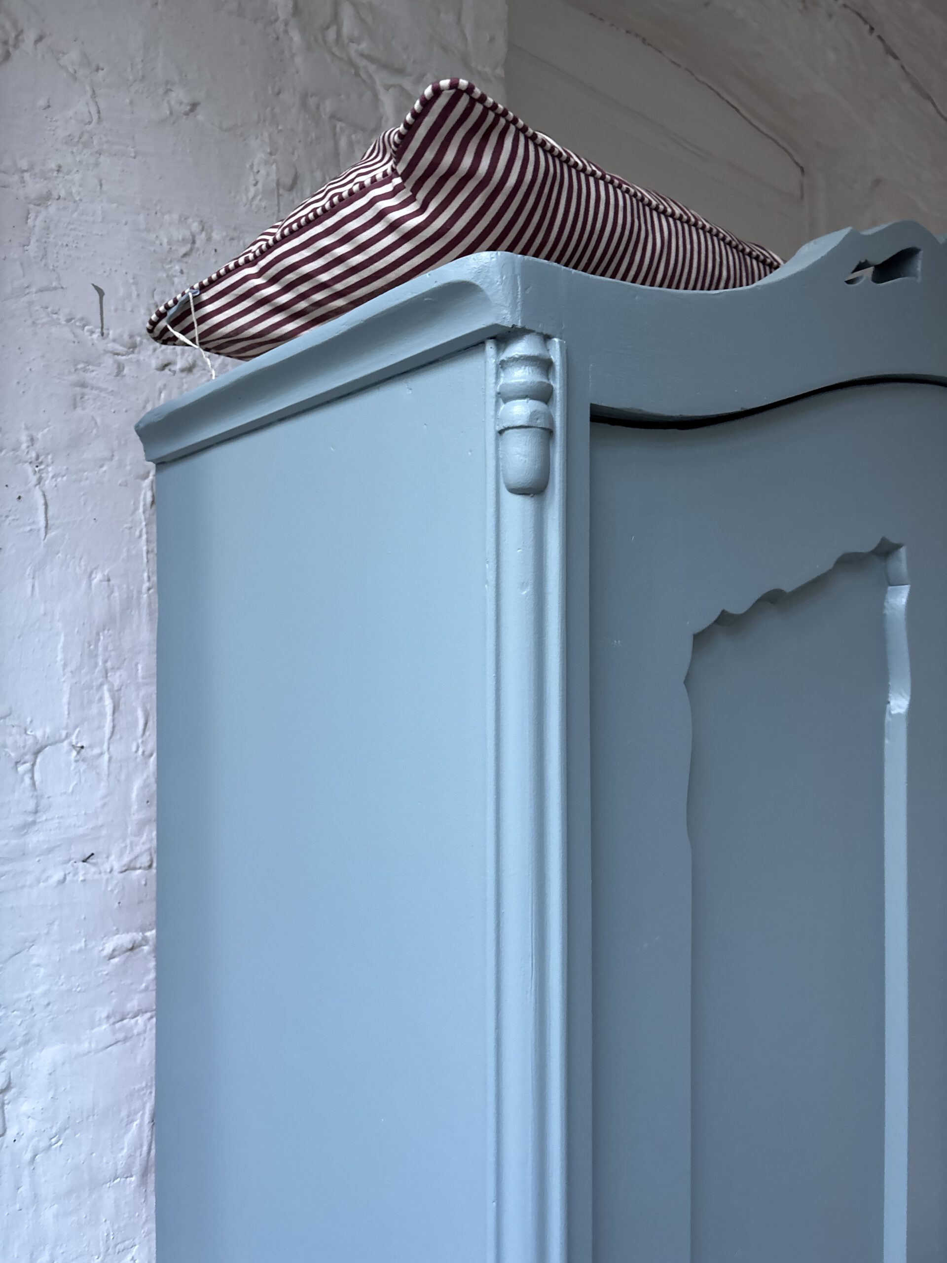ein wunderschöner antiker Schrank aus Prag in zeitlosem mittelblau von Farrow and Ball.