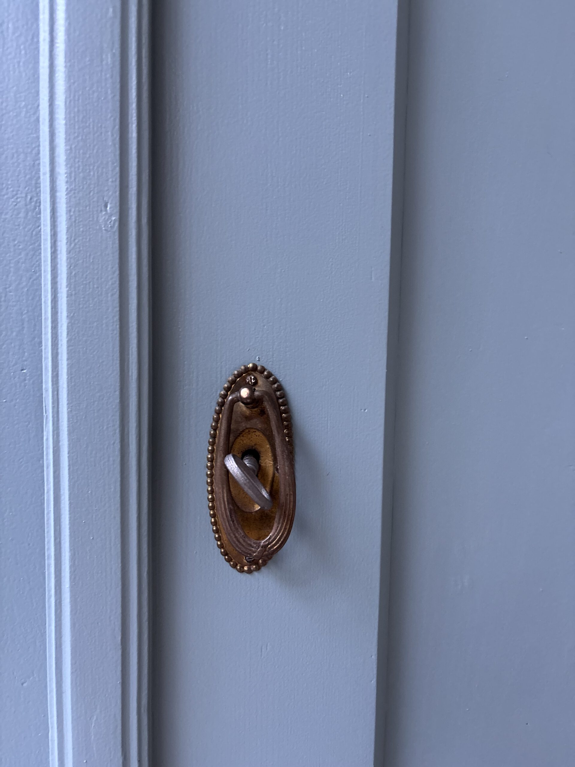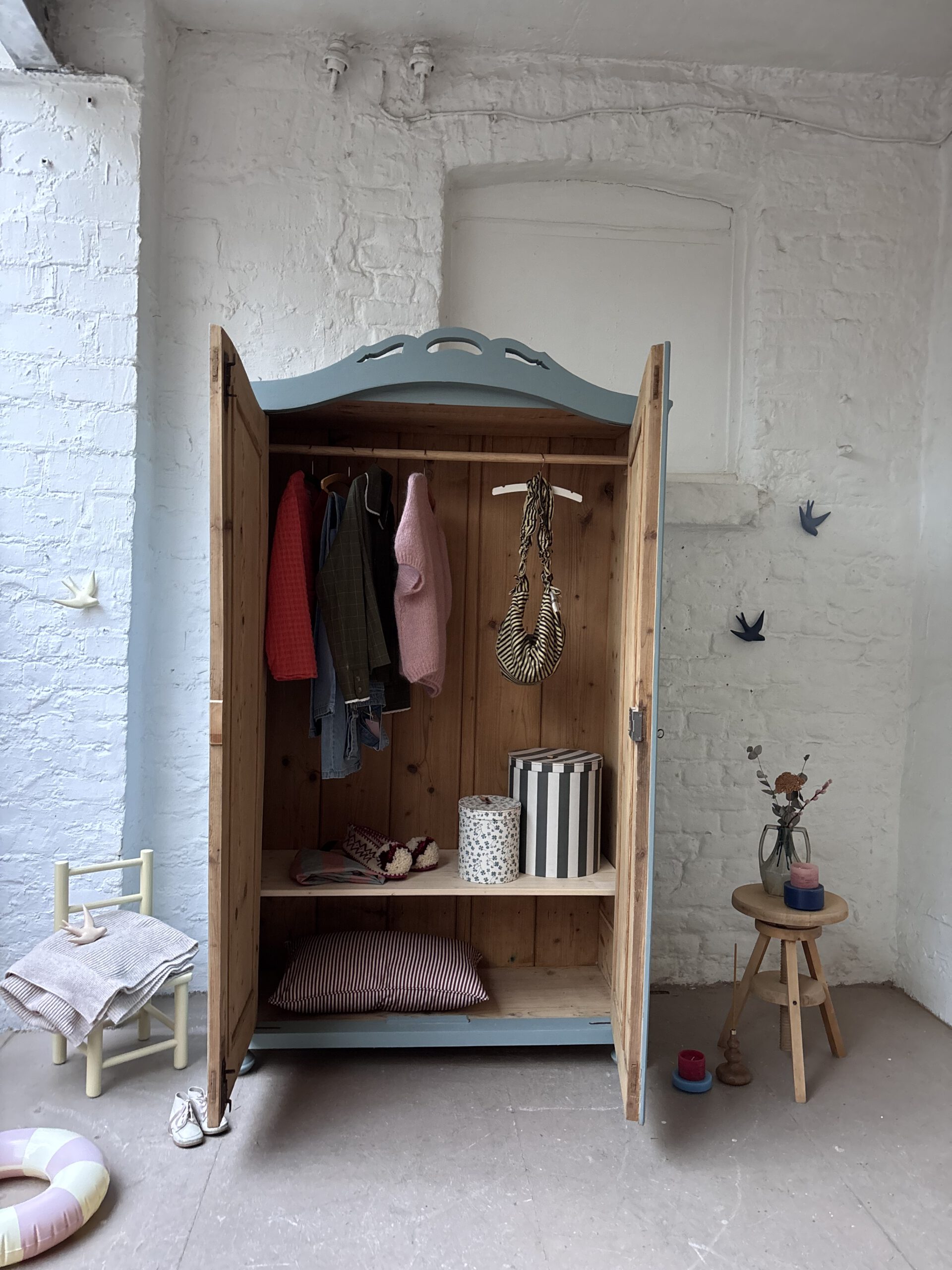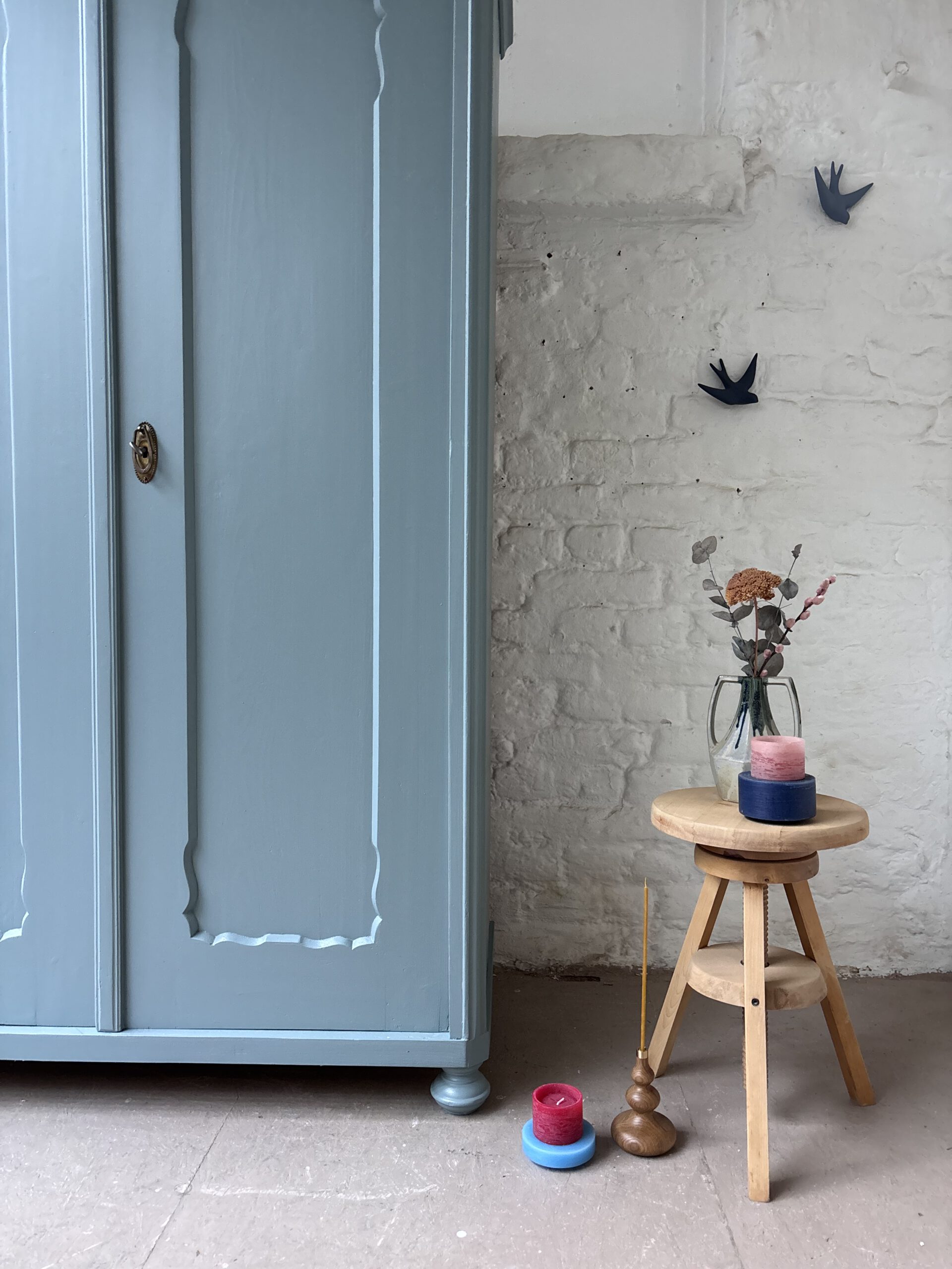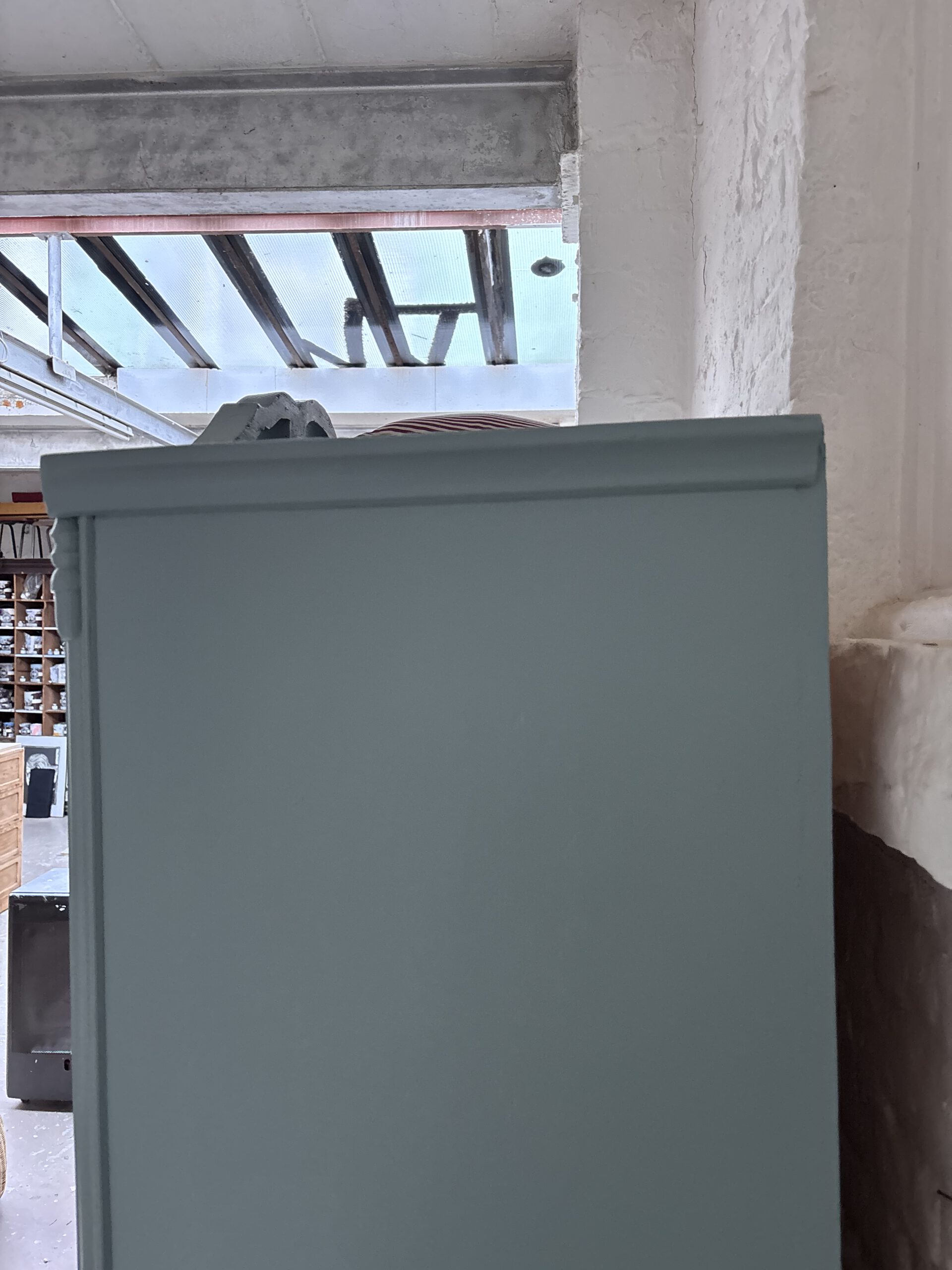 ein wunderschöner antiker Schrank aus Prag in zeitlosem mittelblau von Farrow and Ball.
