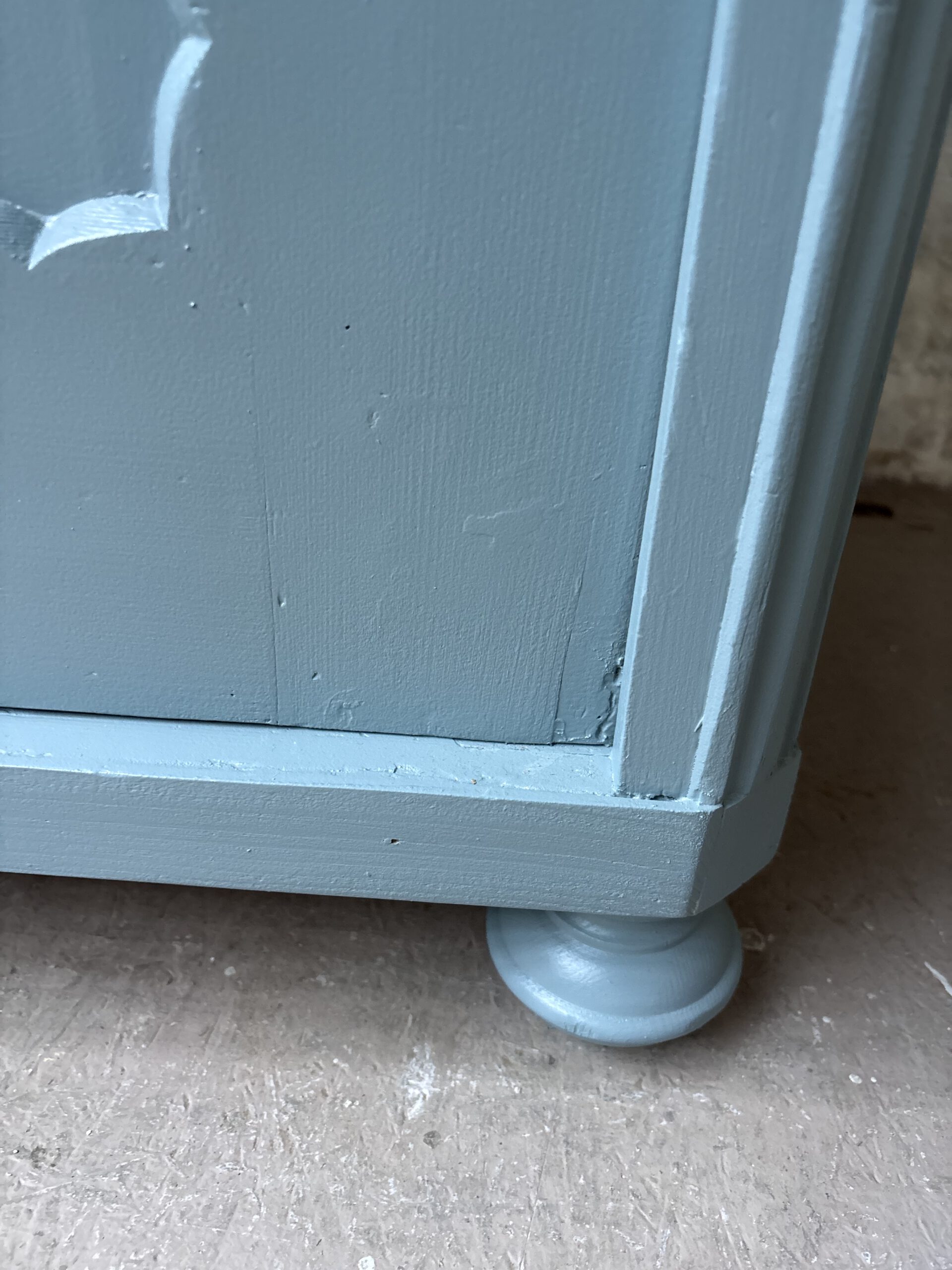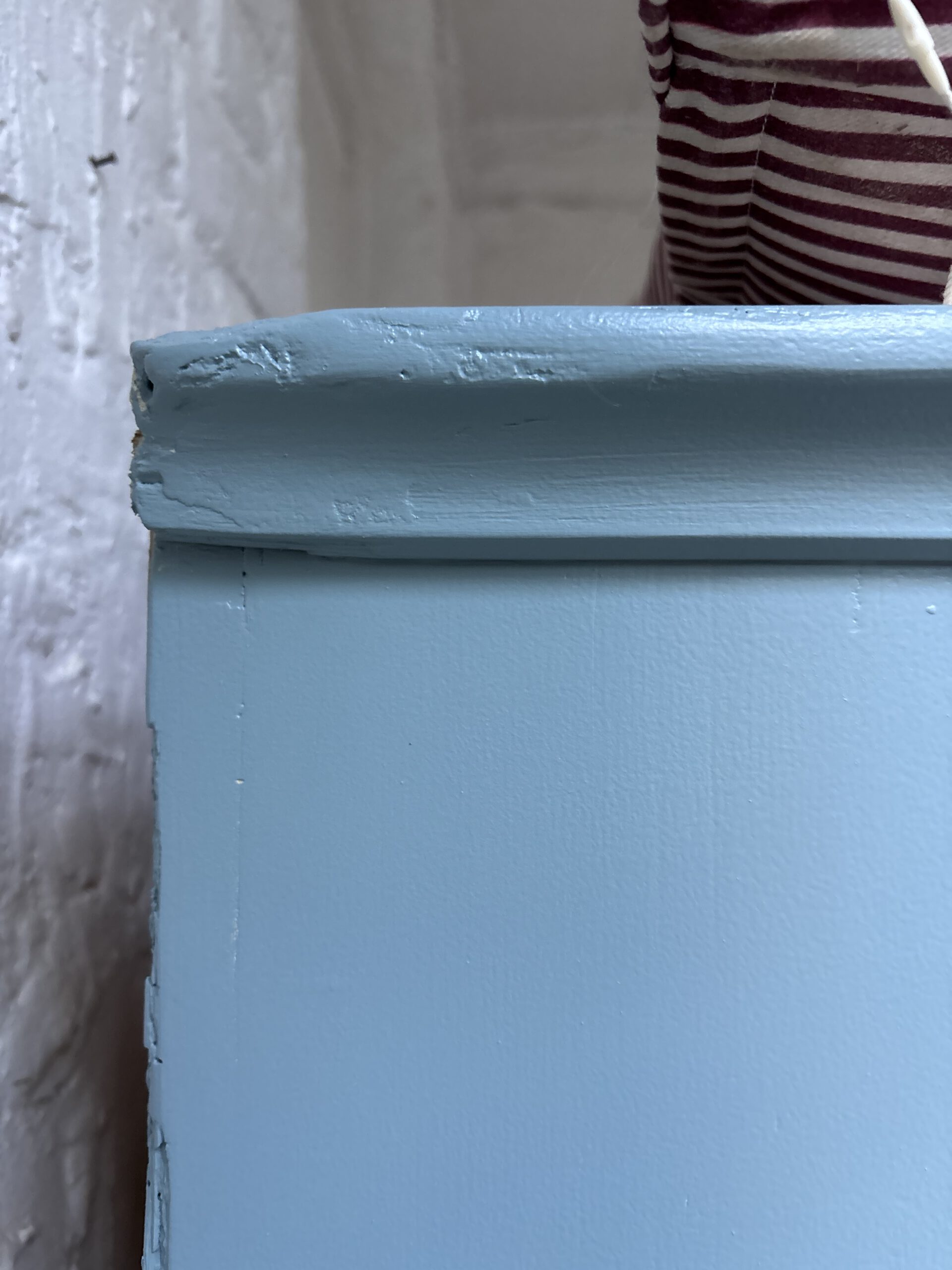 Karl wurde von uns geschliffen, grundiert und zwei mal lackiert in einem mittelblau von Farrow and Ball.