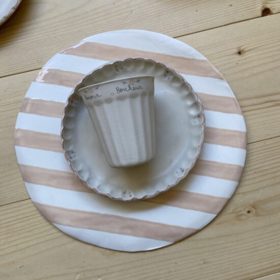 Das Set wurde von Studio Humade aus den Niederlanden entwickelt. Das Set enthält Zweikomponetenkleber, Gold- und Silberpulver, Pinsel, Bambusstäbe und Handschuhe. Die verwendeten Materialien Kitt, Zweikomponetenkleber und Farbpulver sind leider nicht lebensmittelecht und nicht Spülmaschinenfest.