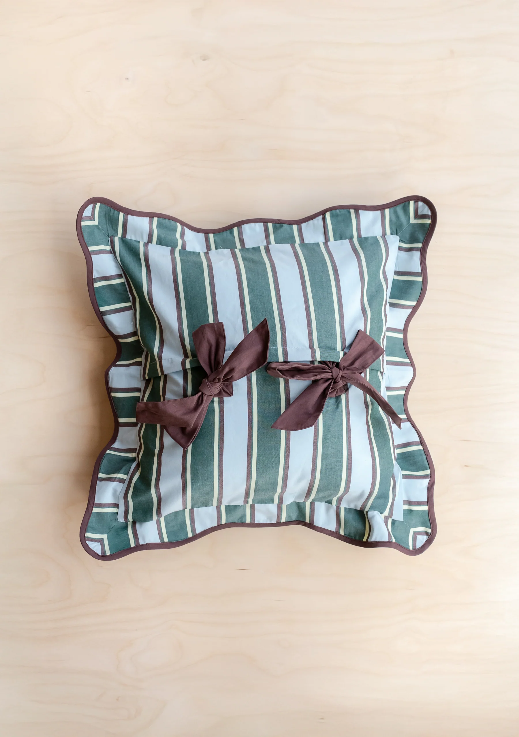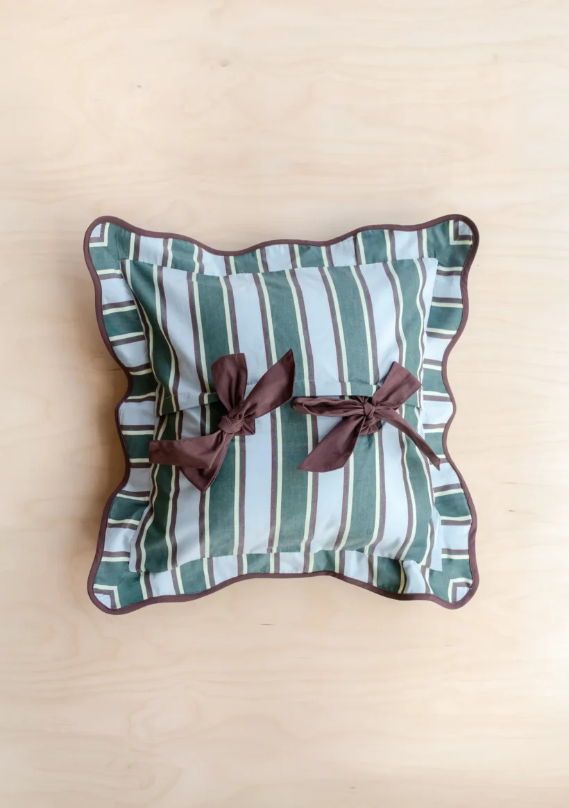 Dieses quadratische Kissen von TBCo aus 100 % Baumwolle haben wir in blau und pink.