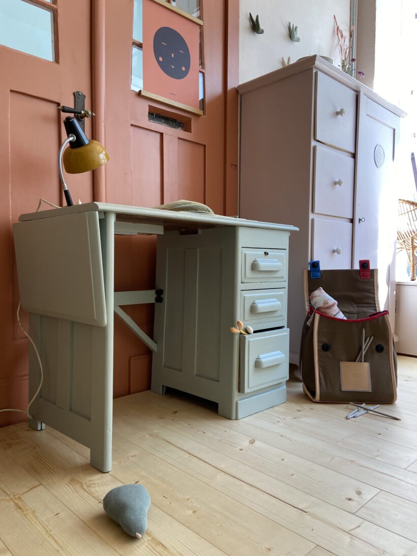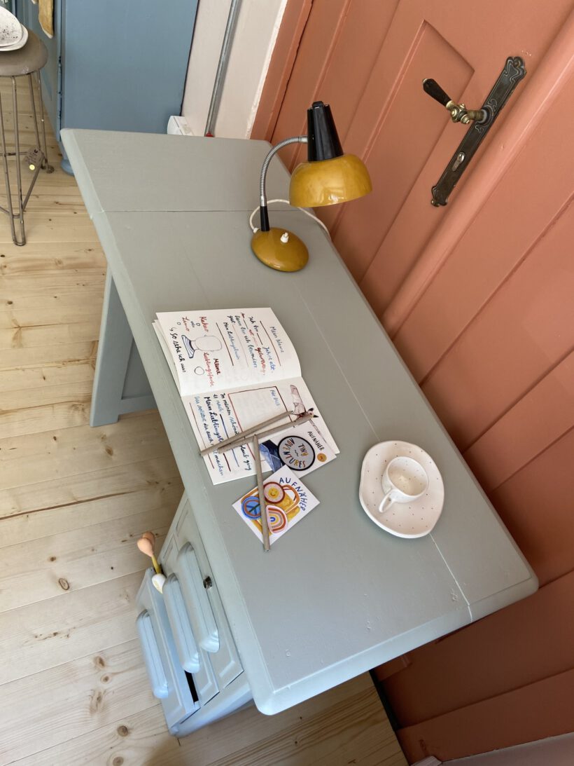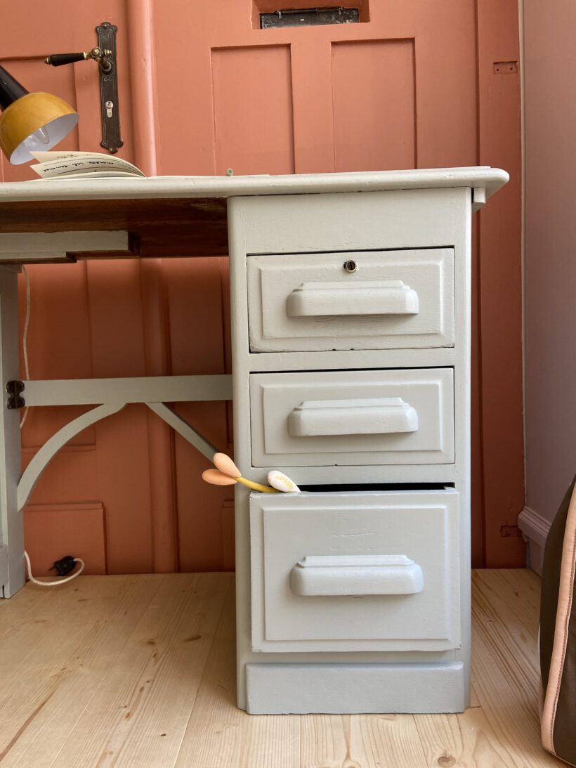 Wunderschöner antiker Tisch aufbereitet in blaugrau von Farrow and Ball.