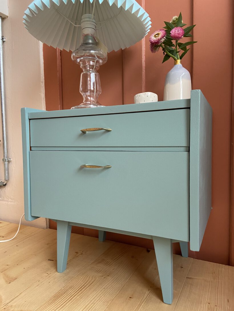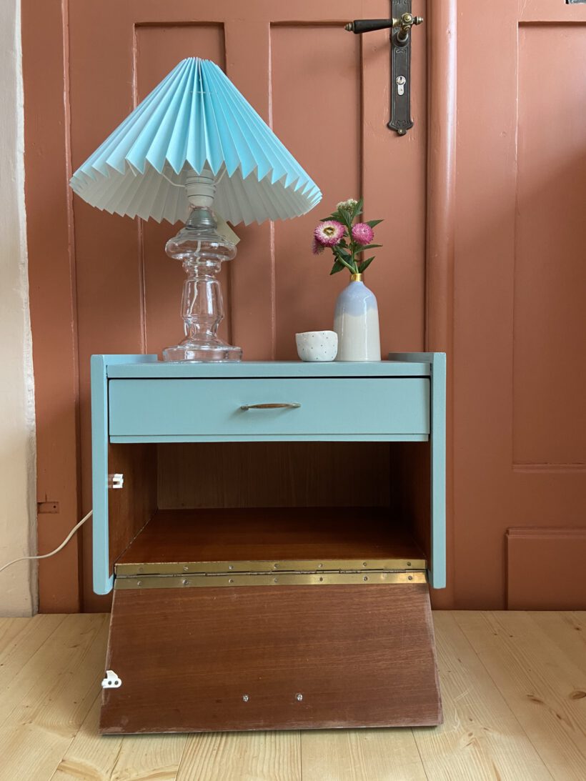 Lilly ist ein kleines hübsches 50er Jahre Kommödchen in einem wunderschönen blau von Farrow and Ball aufbereitet. Sie hat ein Aufklappfach und eine Schublade und macht sich ganz wunderbar als kleiner Eyecatcher.