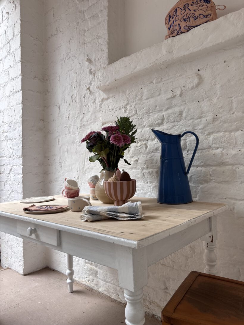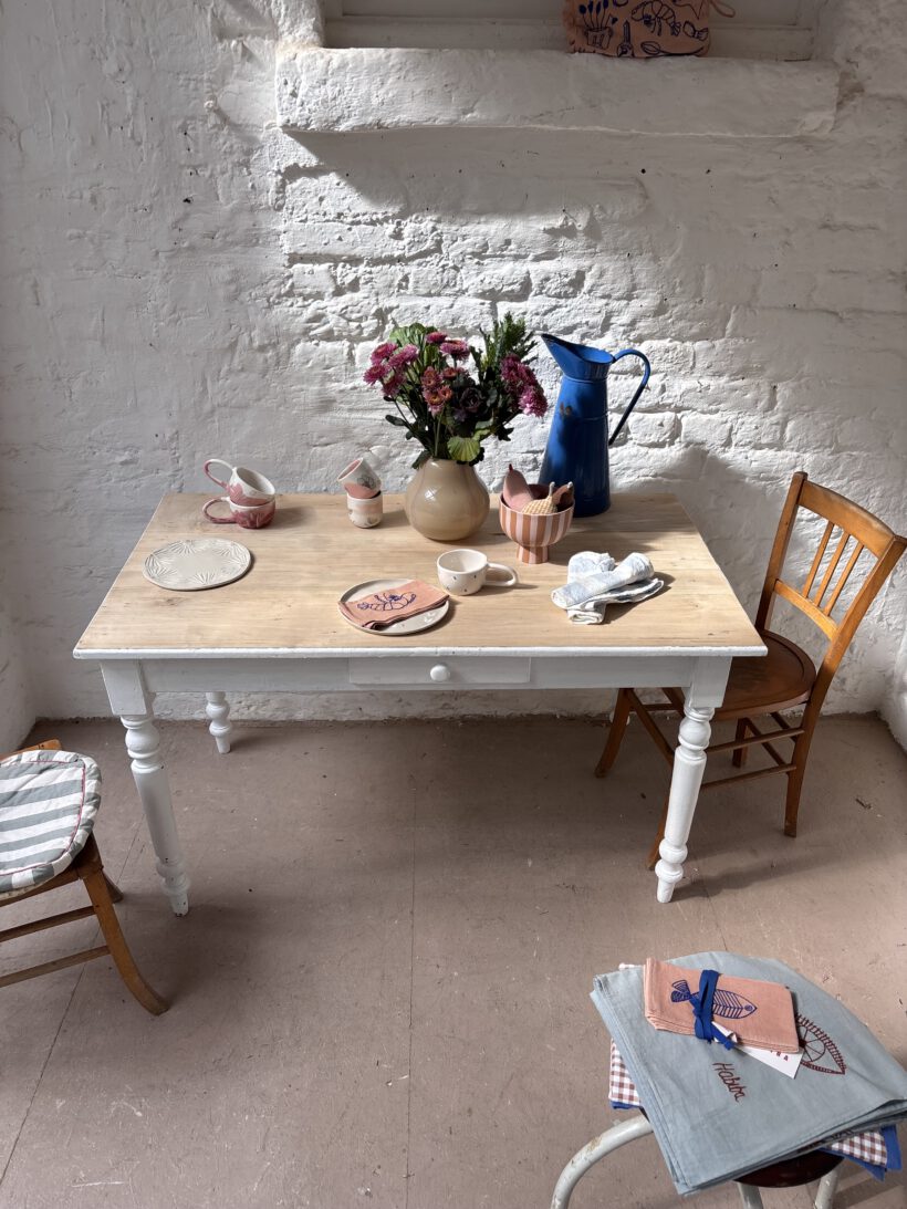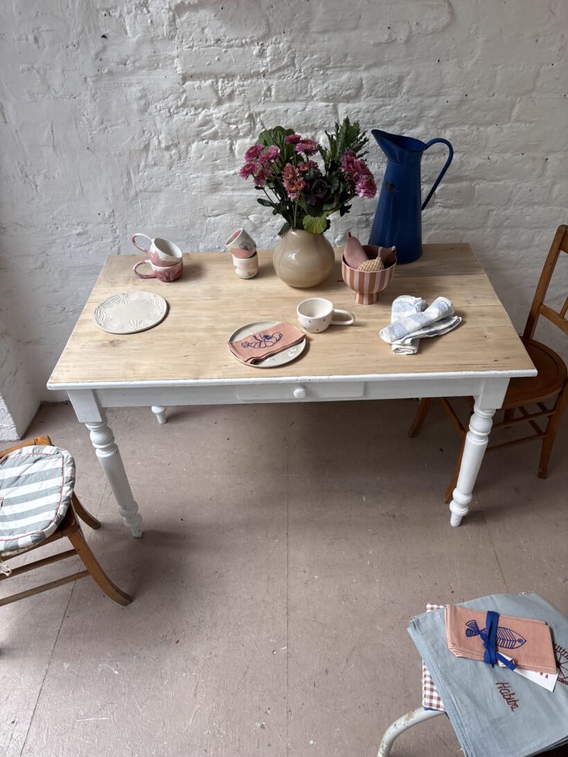 ein wunderschöner antiker Esstisch aus Frankreich. Wir haben uns direkt in Lisienne verliebt auf unserer letzten Flohmarktreise. So ein schöner klassischer und auch besonderer Tisch. Gut 100 Jahre alt ist sie schon und sie wird auch noch 200 Jahre erreichen;-)