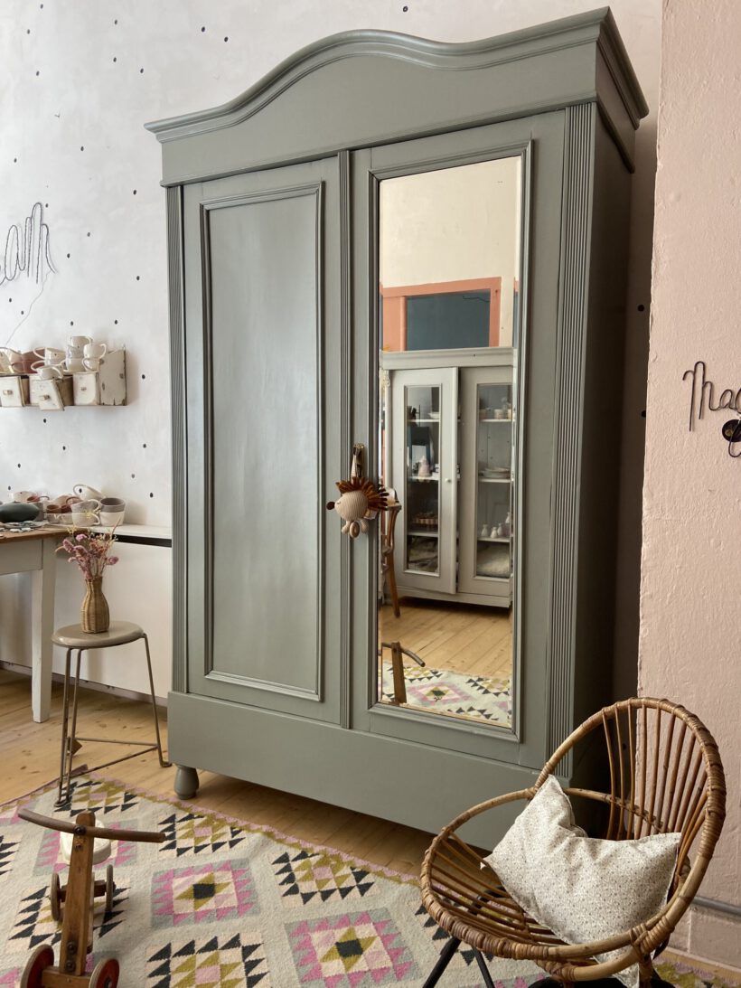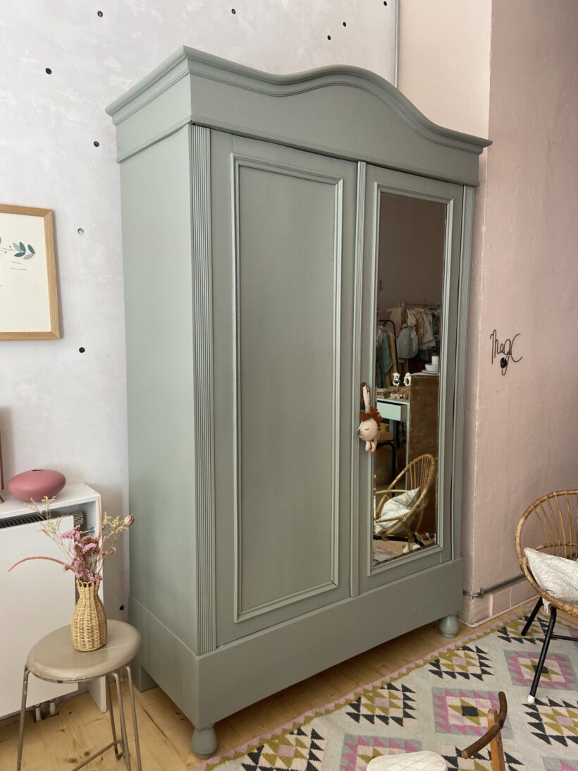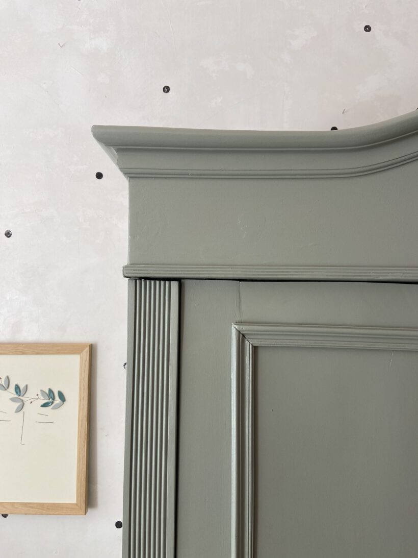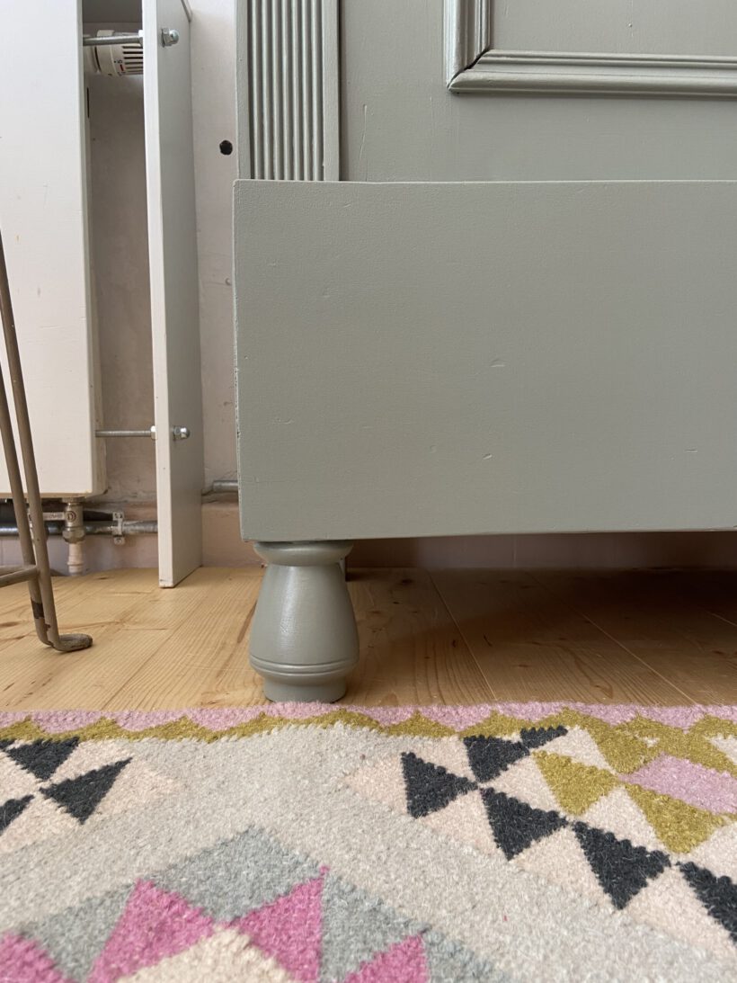 Wir haben Lola restauriert, geschliffen und grundiert, sowie zwei Mal lackiert und sie in ein Graugrün von Farrow and Ball getaucht.