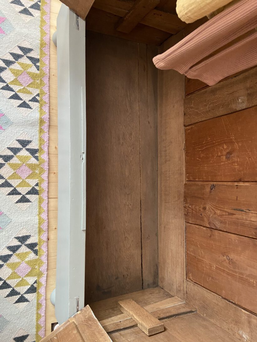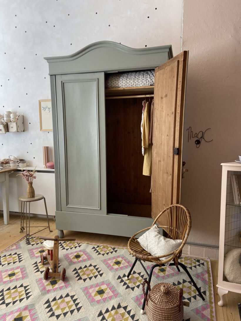 Als Steckschrank lässt sich Lola einfach in 11 Teilen auf- und abbauen. Gerne geben wir eine Anleitung dazu mit, falls diese Art von Schrankaufbau euch noch unbekannt ist. Kleine Info vorab: Steckschränke sollten immer auf geradem Boden stehen, damit die Türen gut schließen und öffnen. Gegebenenfalls kann man einen ungeradem Boden unterlegen.