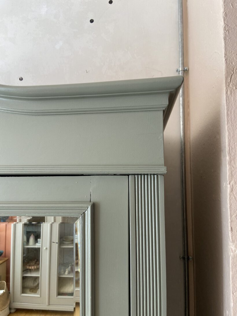 ein wunderschöner antiker Steckschrank mit geschliffenem Spiegel.