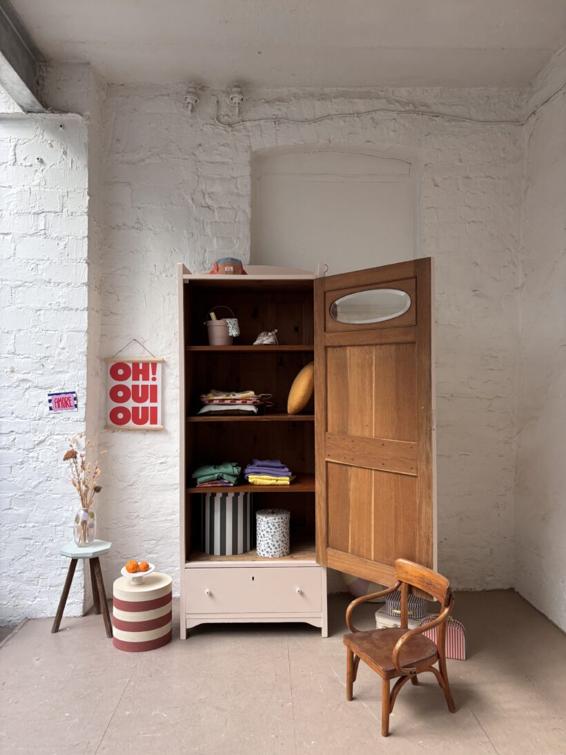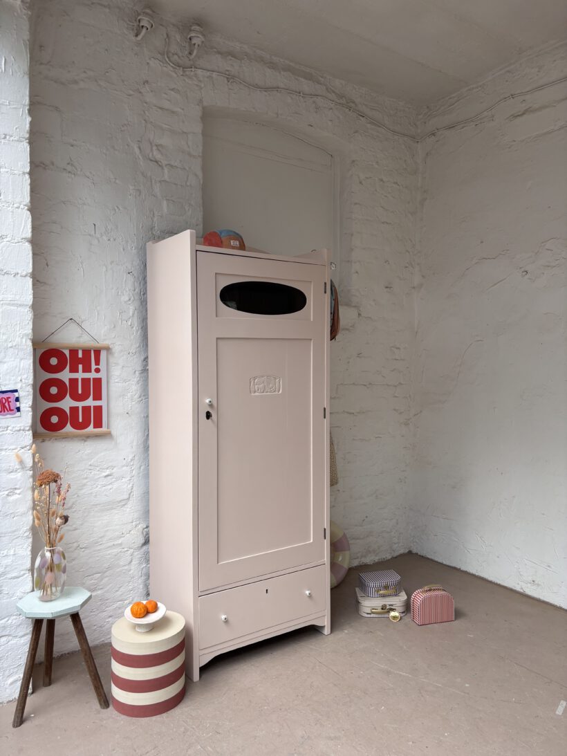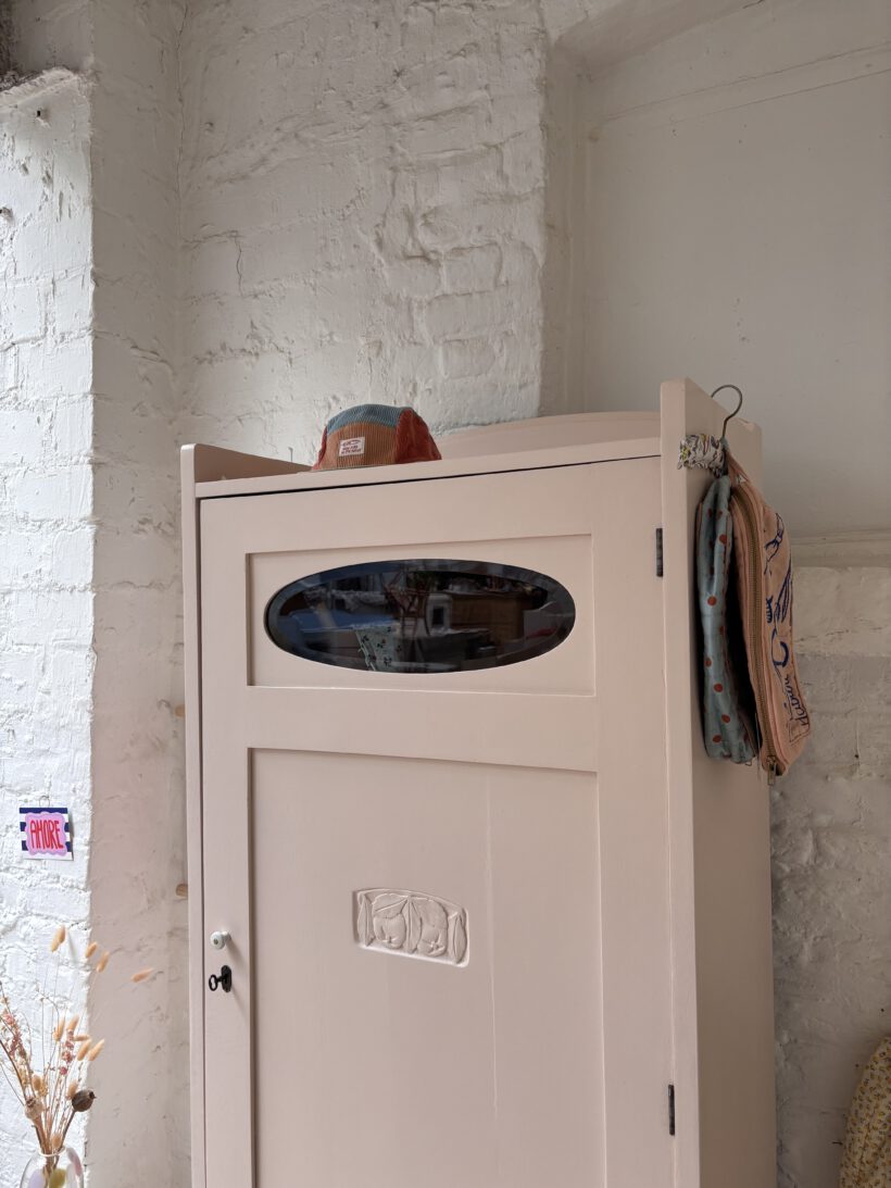 Lotta ist einfach hübsch und ein Hingucker in jedem Zuhause. Sie hat ein ovales Fenster mit Facettenschliff, der original erhalten ist und unschlagbare Maße. Mit gerade Mal einer Breite von 72 cm fällt sie definitiv in ein besonderes Maß, dass oft gesucht wird, gerade für Räume mit wenig Stellplatz. Die alten Apfelschränke finden wir besonders schön in Kinderzimmern. Sie bieten genug Stauraum für Kinderkleidung und nehmen wenig Platz ein.