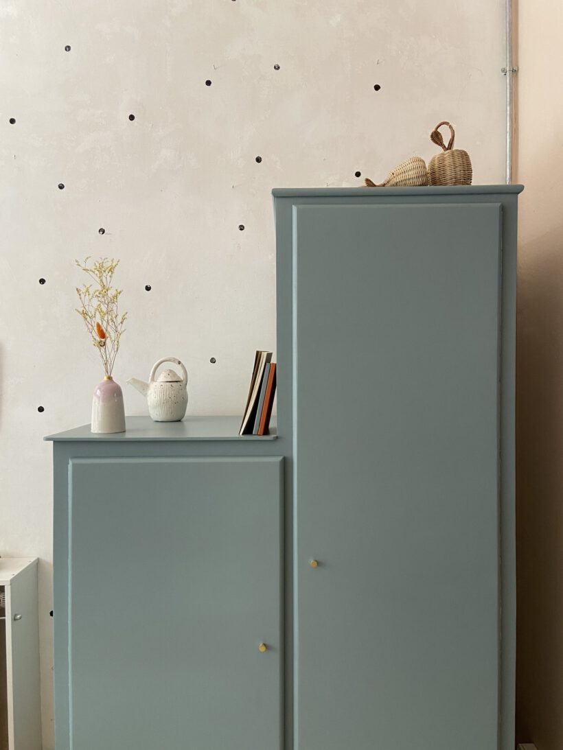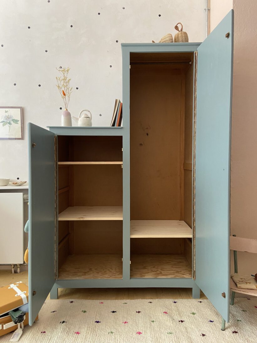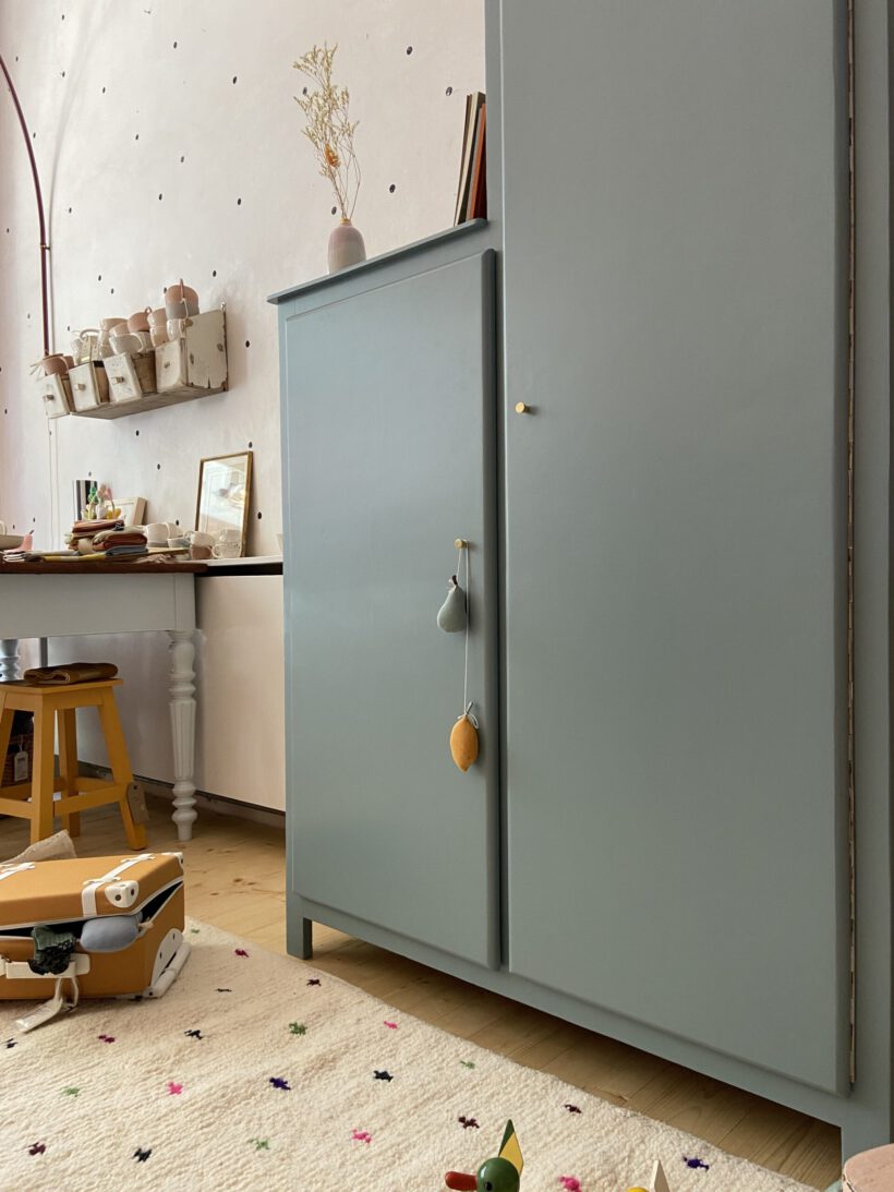 Louanne hat eine sehr ungewöhnliches und besonderes Design. Die zwei Schrankseiten in unterschiedlichen Höhen machen Sie zu einer echten Sahneschnitte und sehr funktional für Kinderzimmer, Räume mit Hochbetten oder mit Dachschrägen. Oder einfach im Hinblick auf ein besonderes Interiordesign. Auf der linken Seite kann man in Vertiko Höhe schöne Lieblinge aufstellen, innen sind drei Fächer für Kleidung uns co. Auf der rechten Seite befindet sich eine Kleiderstange und ein Boden. Eine sehr praktische Aufteilung und ein absolutes „Ich bin verliebt – Teil“ 😉