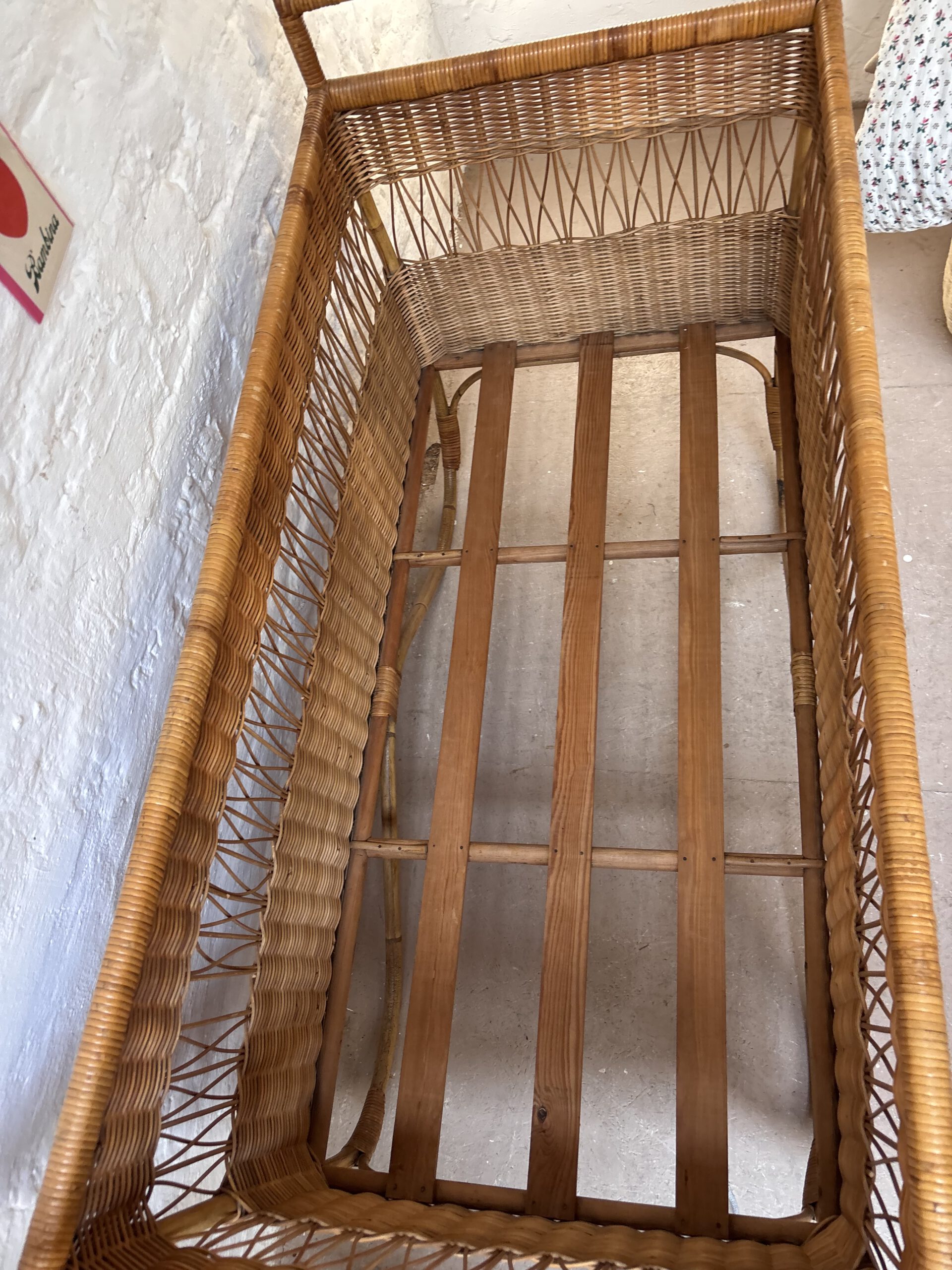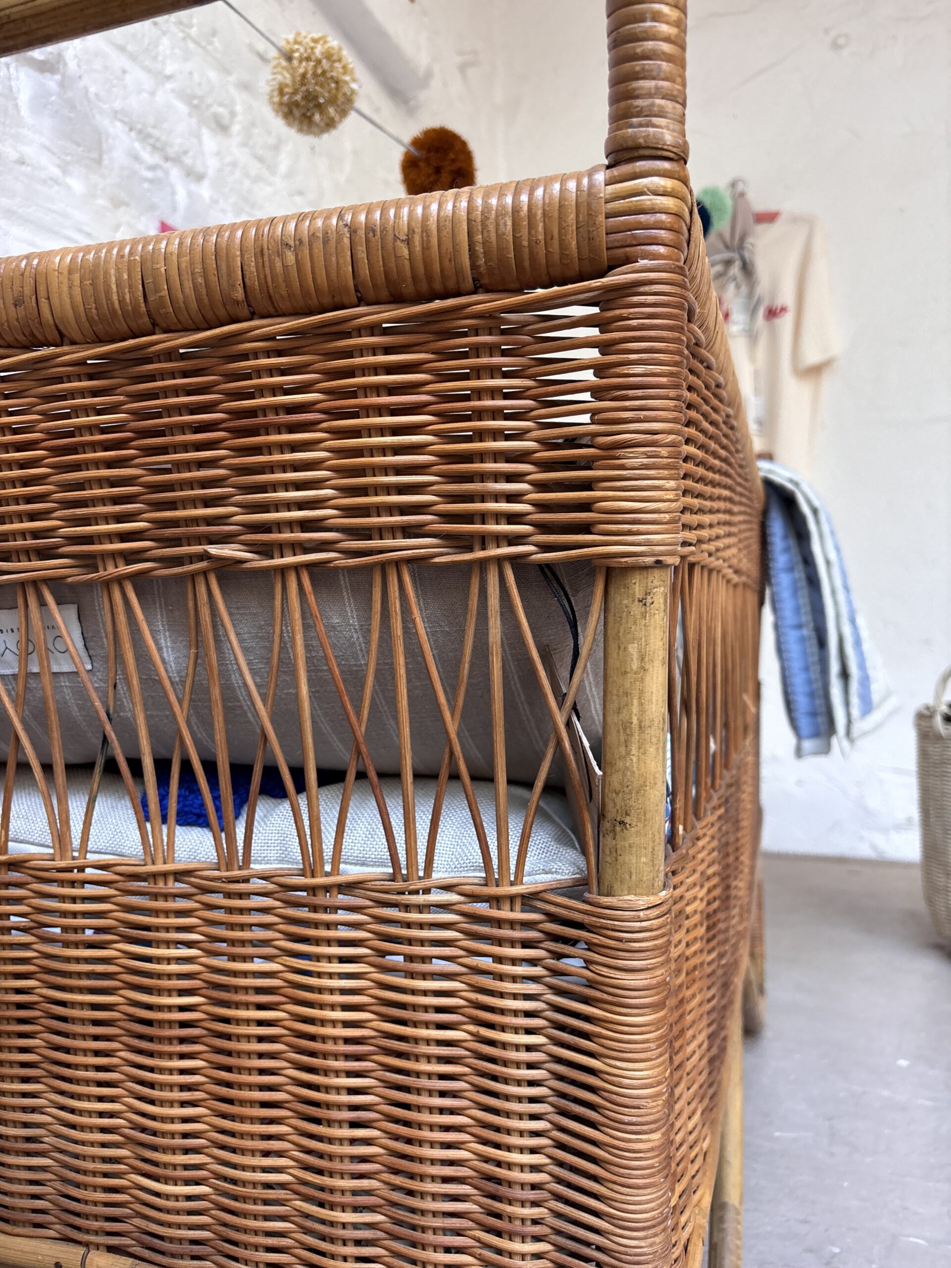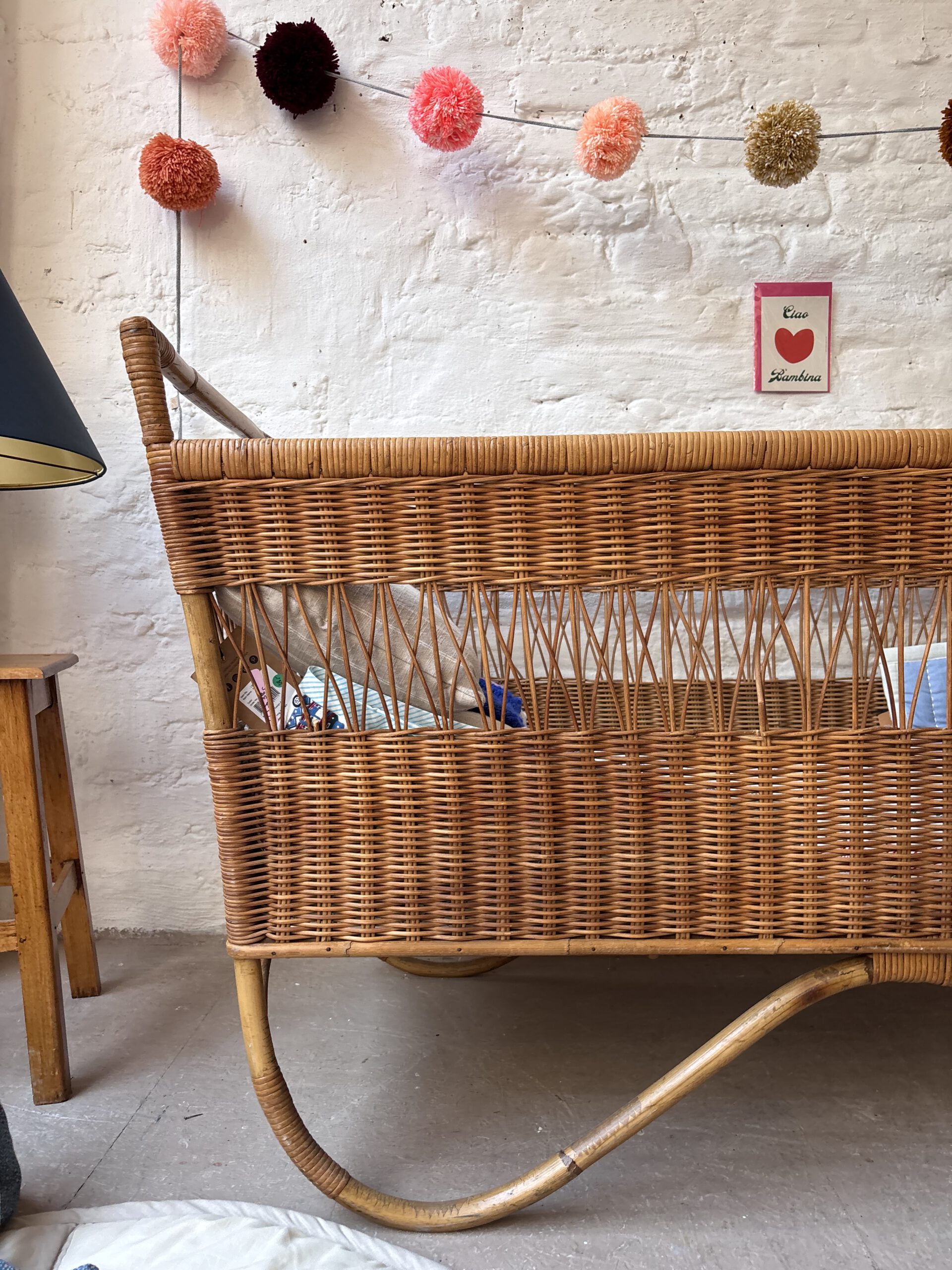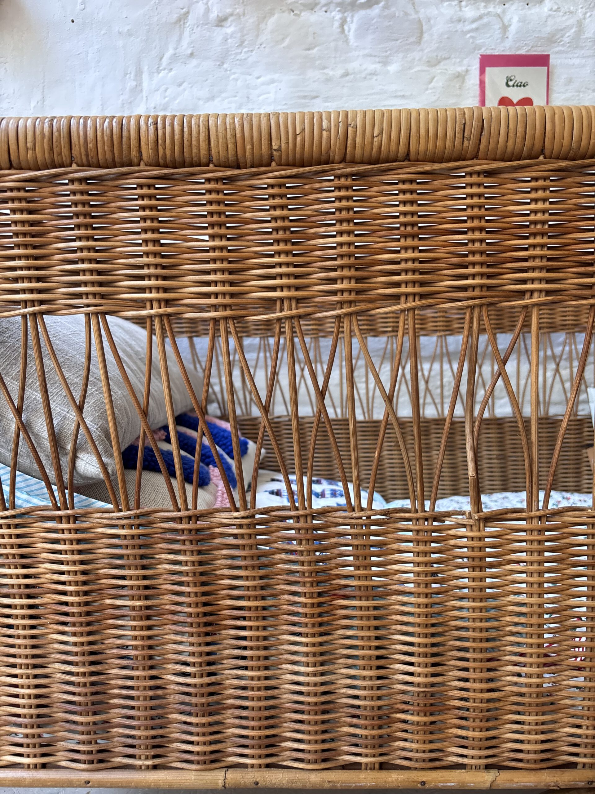 ein wunderschönes Vintage Rattan Kinderbett aus dem Süden Frankreichs. Ein echter Hingucker und gemütlich – sehr praktisch und einfach schön!
