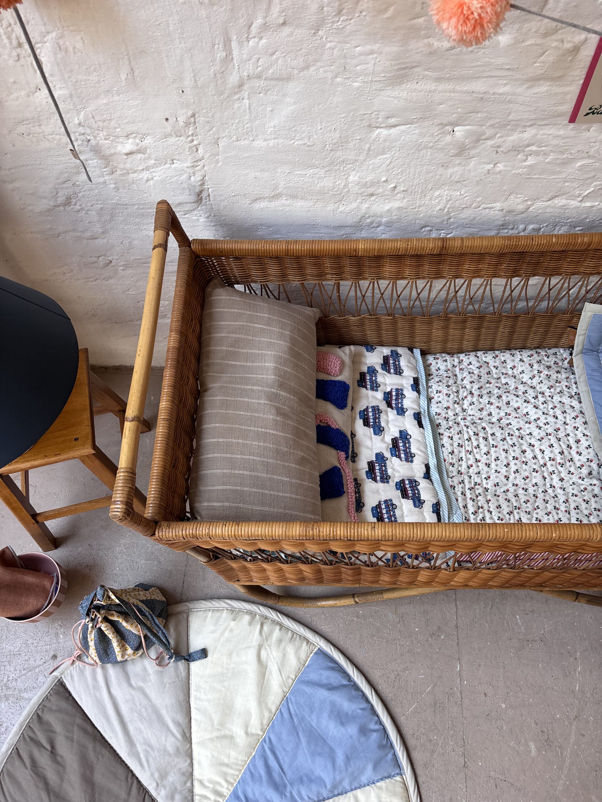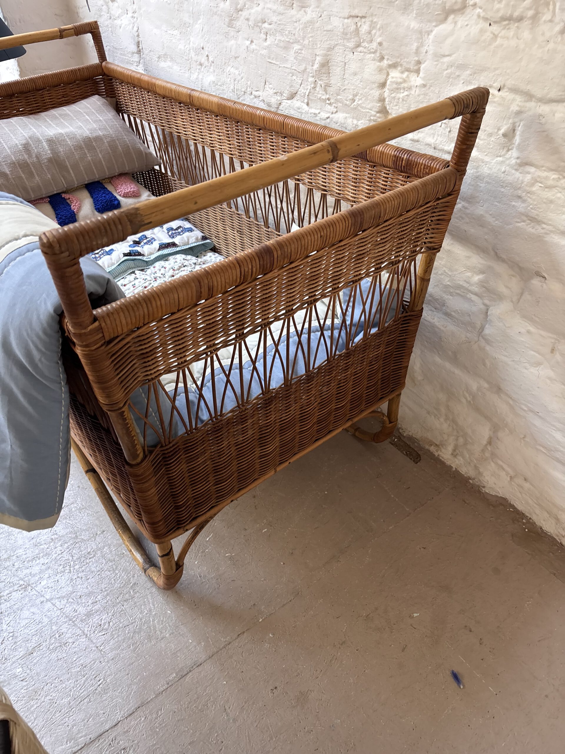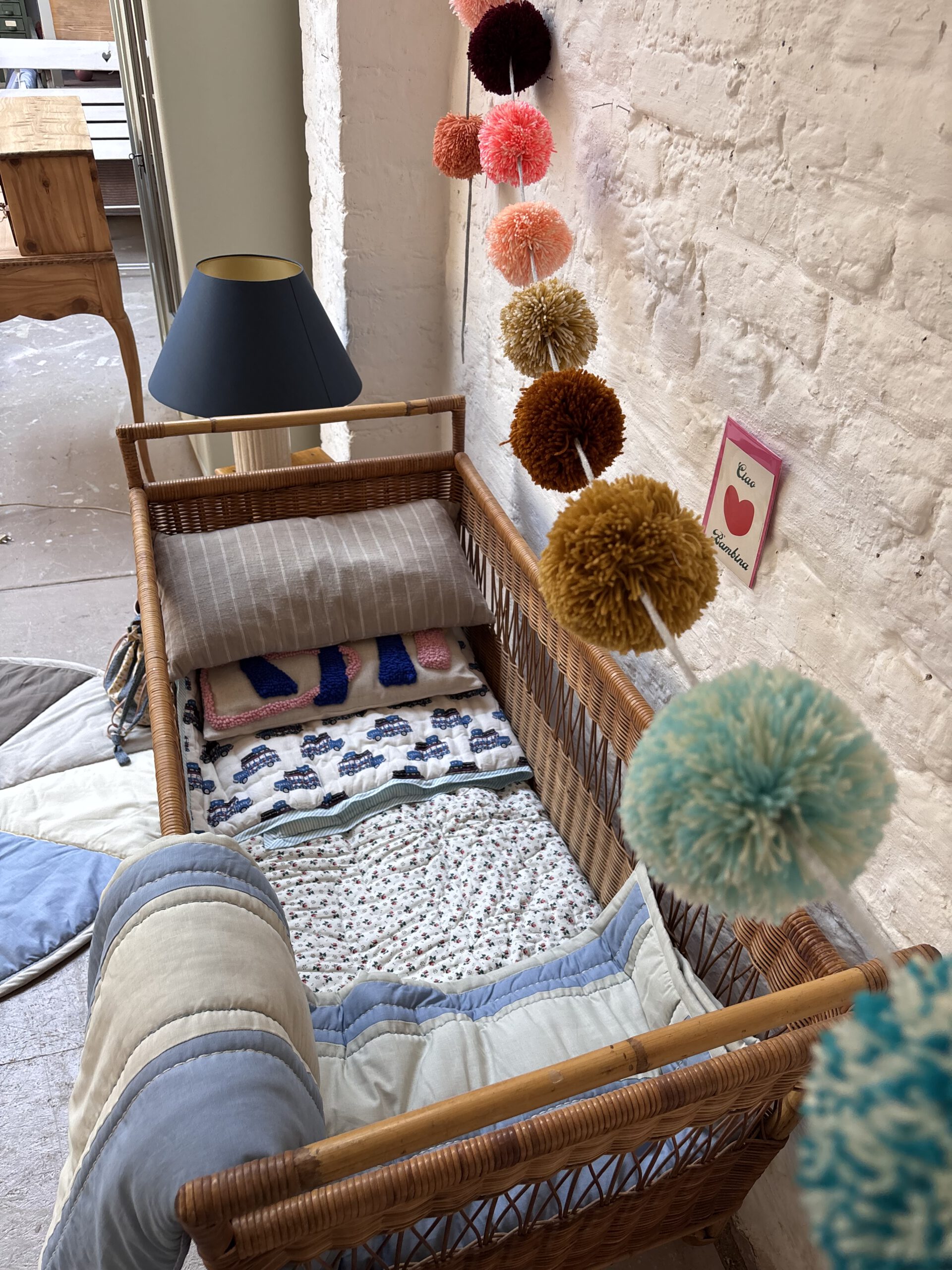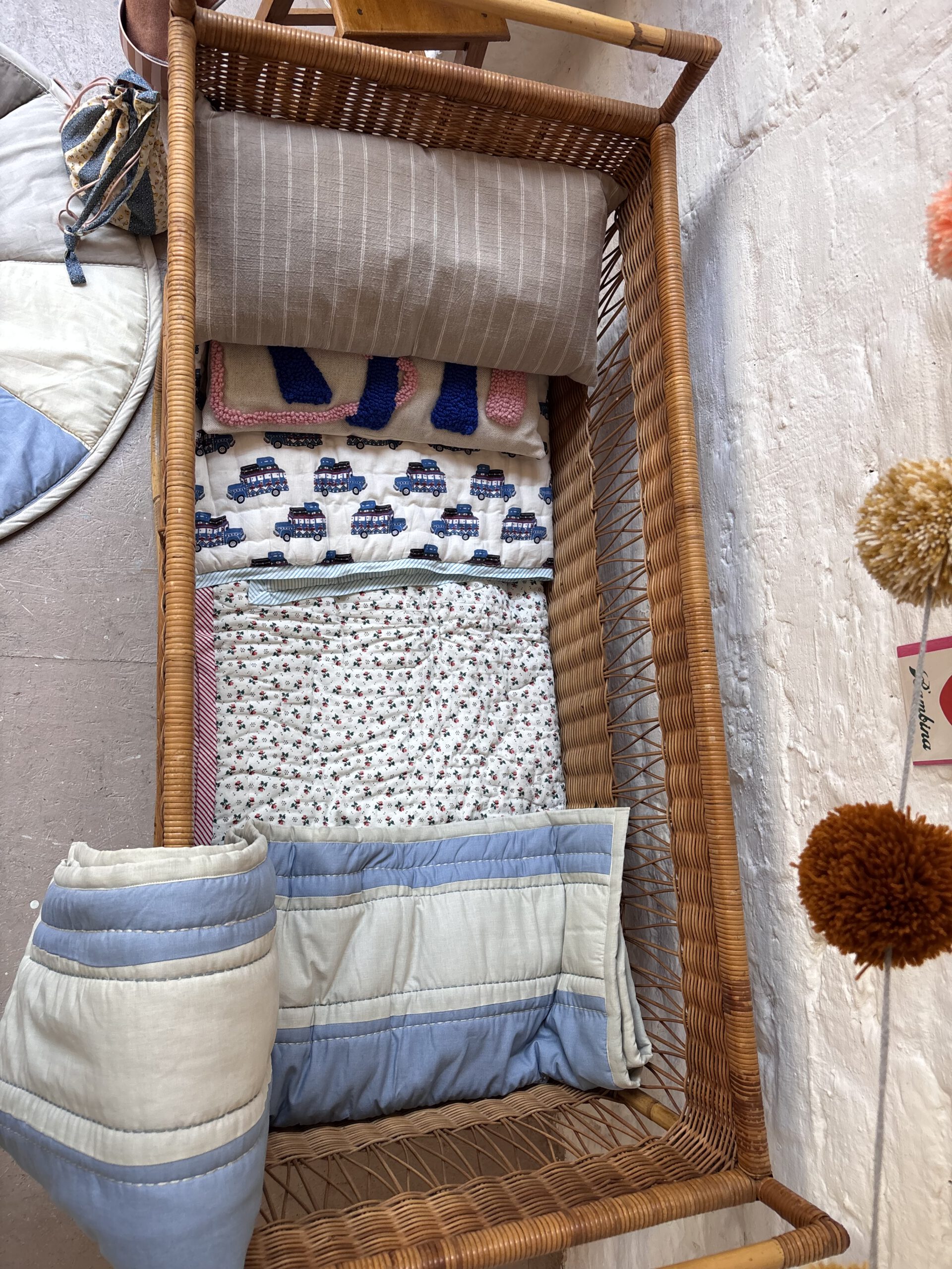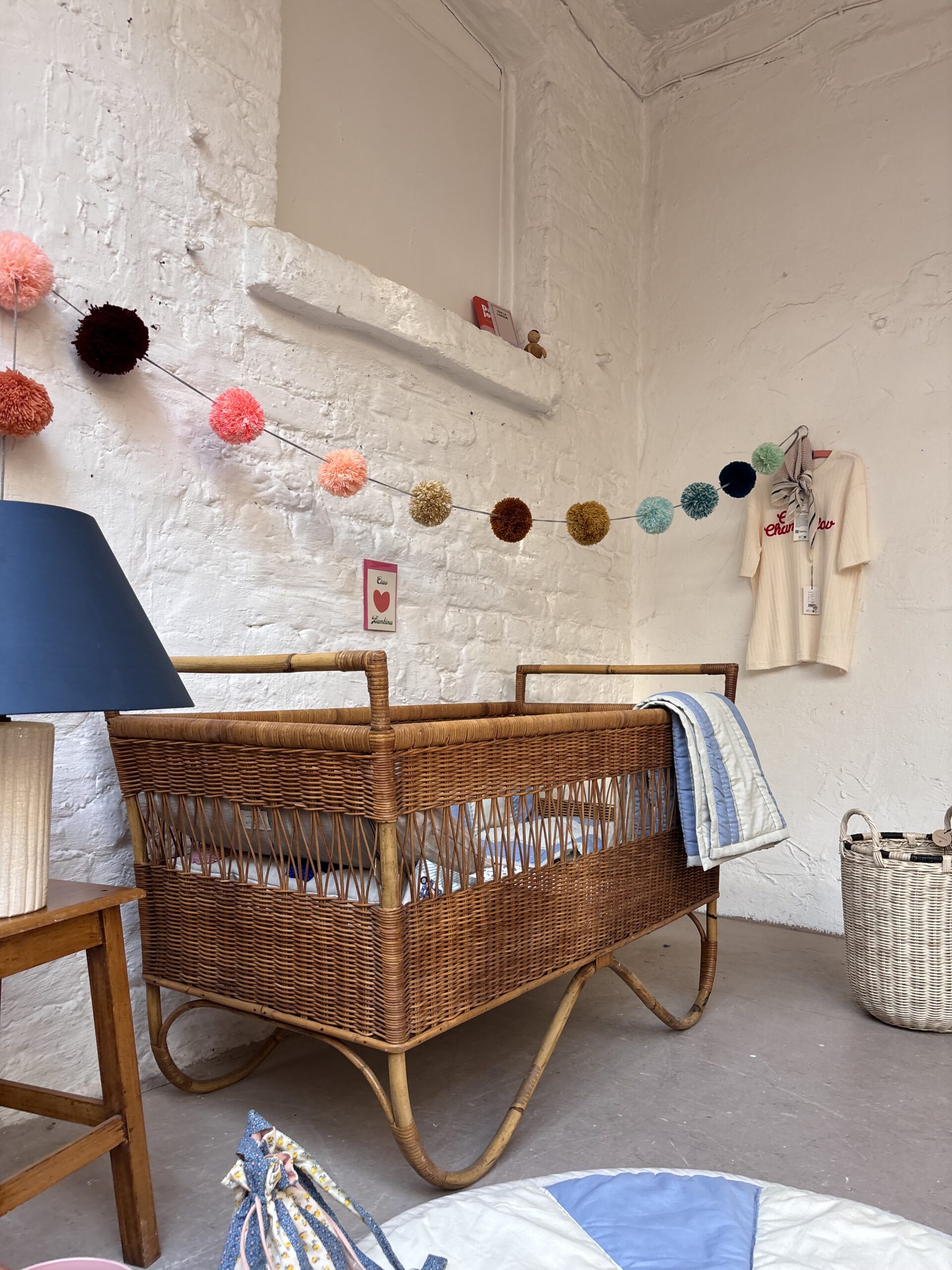 ein wunderschönes Vintage Rattan Kinderbett aus dem Süden Frankreichs. Ein echter Hingucker und gemütlich – sehr praktisch und einfach schön!