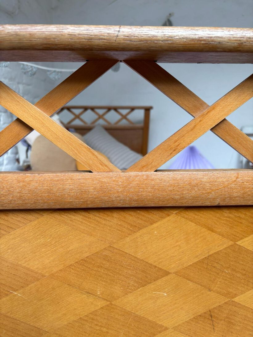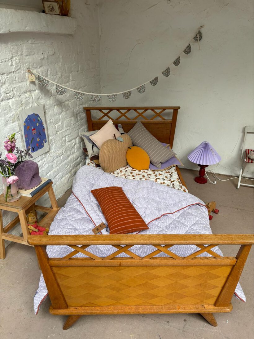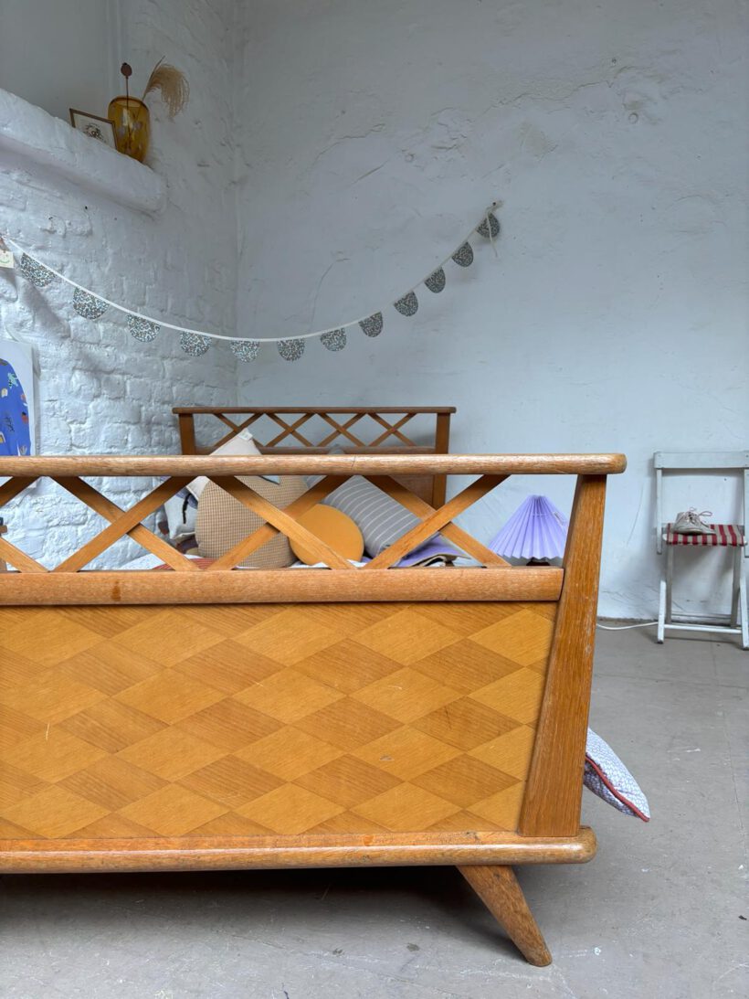 ist ein wunderschönes Bett aus Frankreich aus den 60er Jahren. Es ist so schön, dass wir hin und hergerissen waren, ob wir es natur belassen oder lackieren. Deswegen wollen wir euch in diesem Fall die Entscheidung überlassen. Wenn du Maël kaufen möchtest in natur Holz, dann schleifen wir ihn nochmal fein und wachsen das Holz schön. Der Preis bleibt wie angegeben.