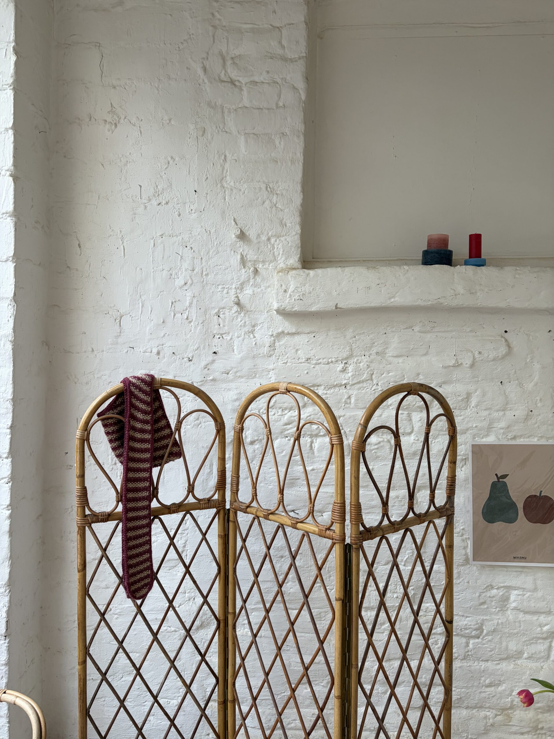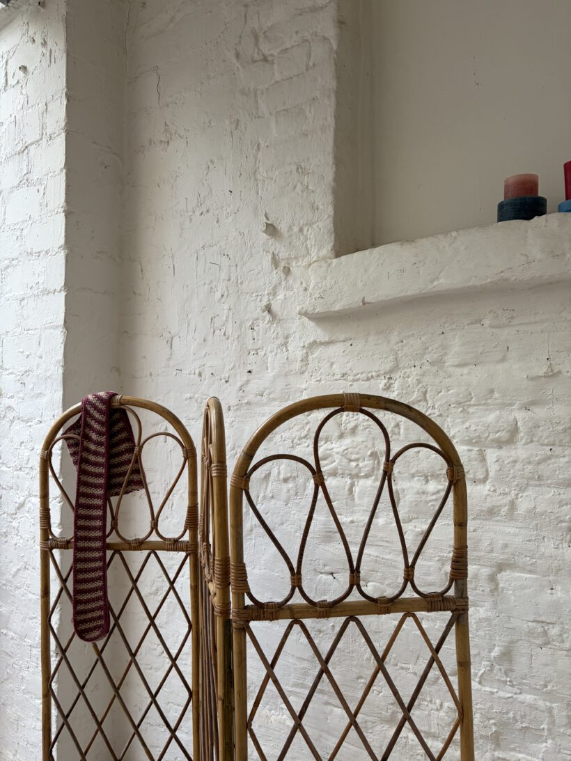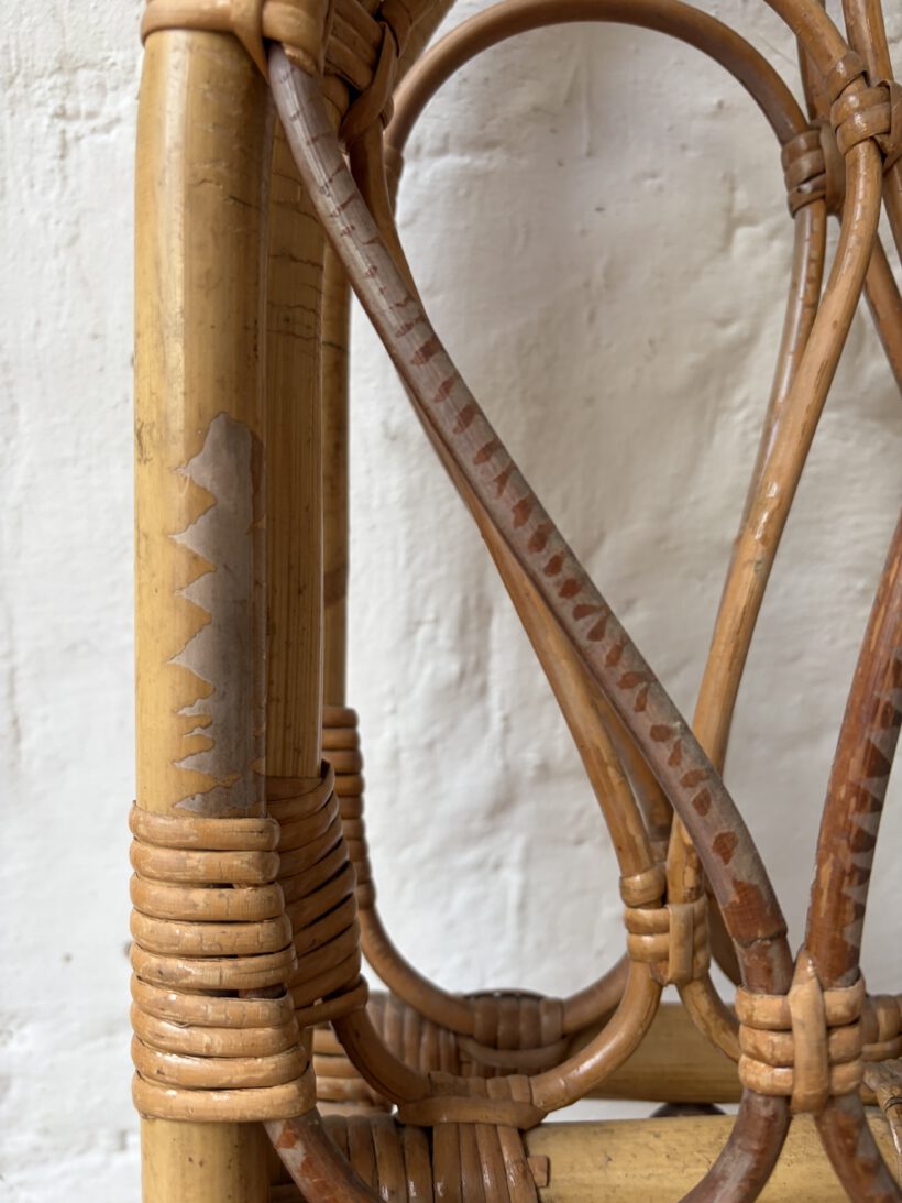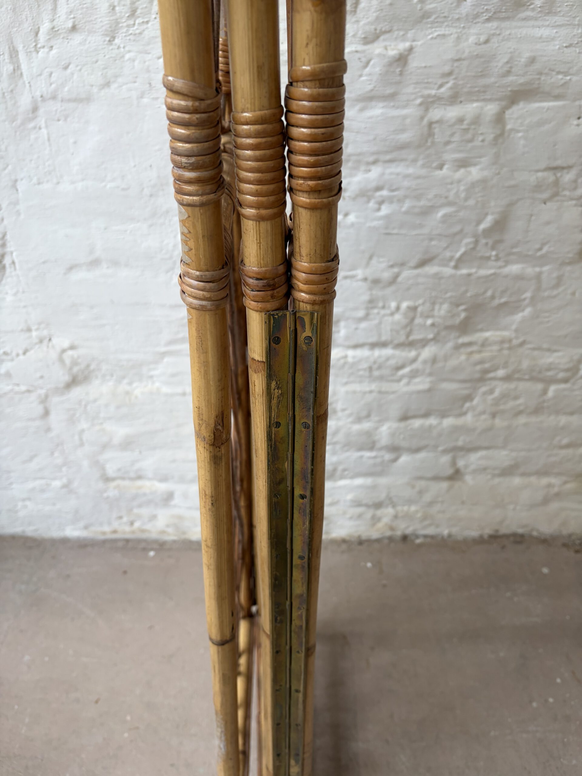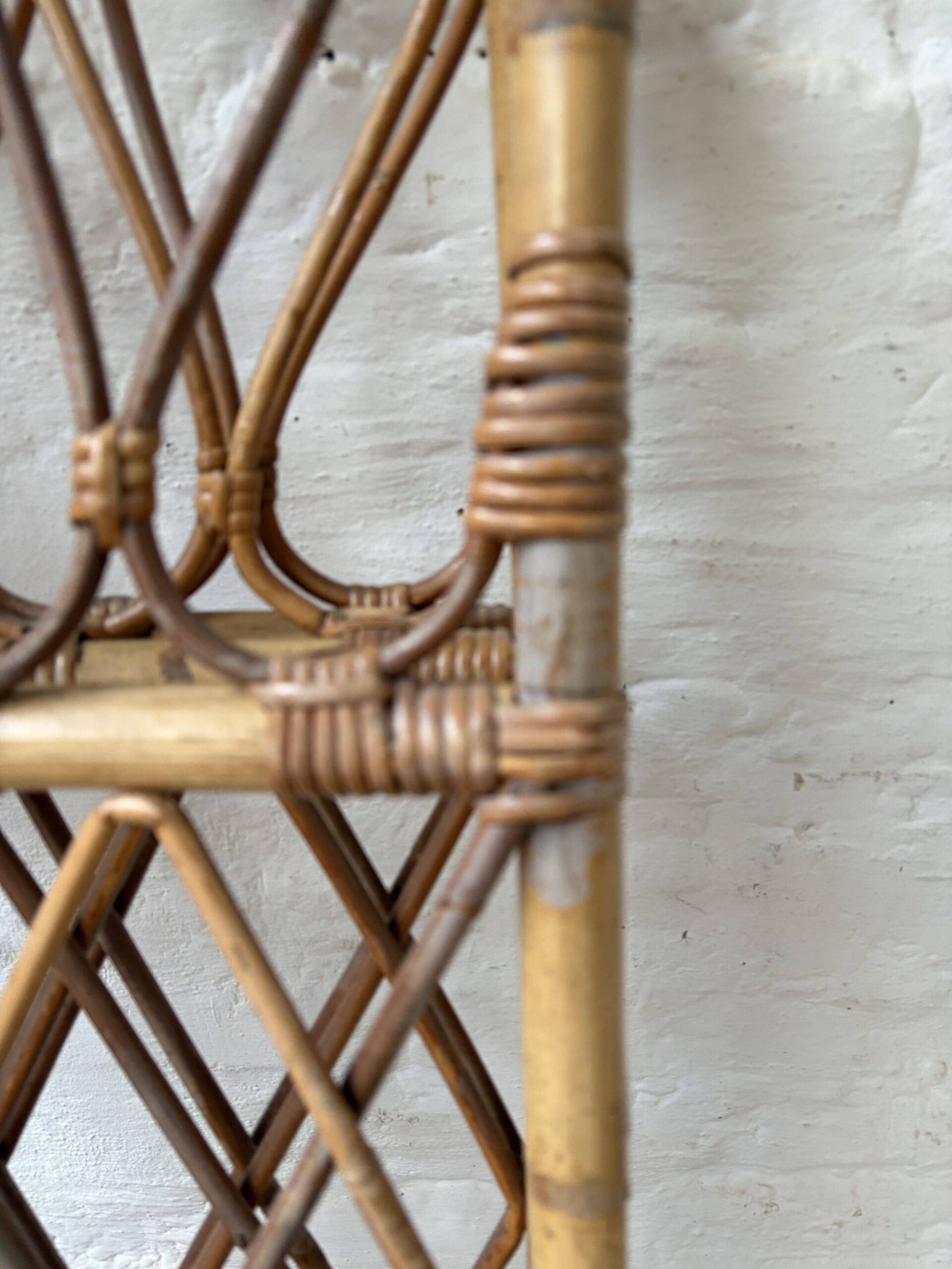 faltbarer Vintage Paravent aus Rattan. Marie stammt aus Frankreich aus den 50/60er Jahren. Sie hat sehr schöne Verzierungen und ist ziemlich gut erhalten. Lediglich ein paar vergrauter patinierter Stellen, die ihren persönlichen Charme ausmachen.