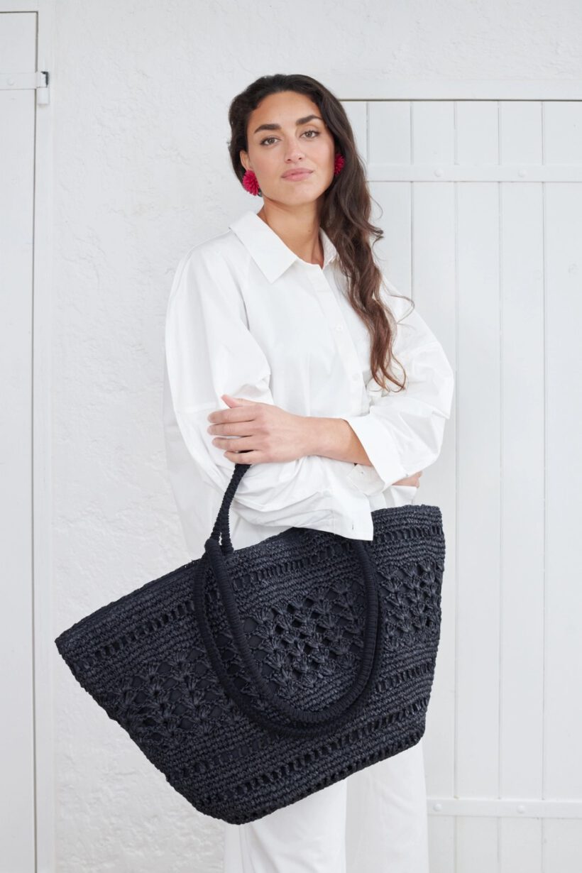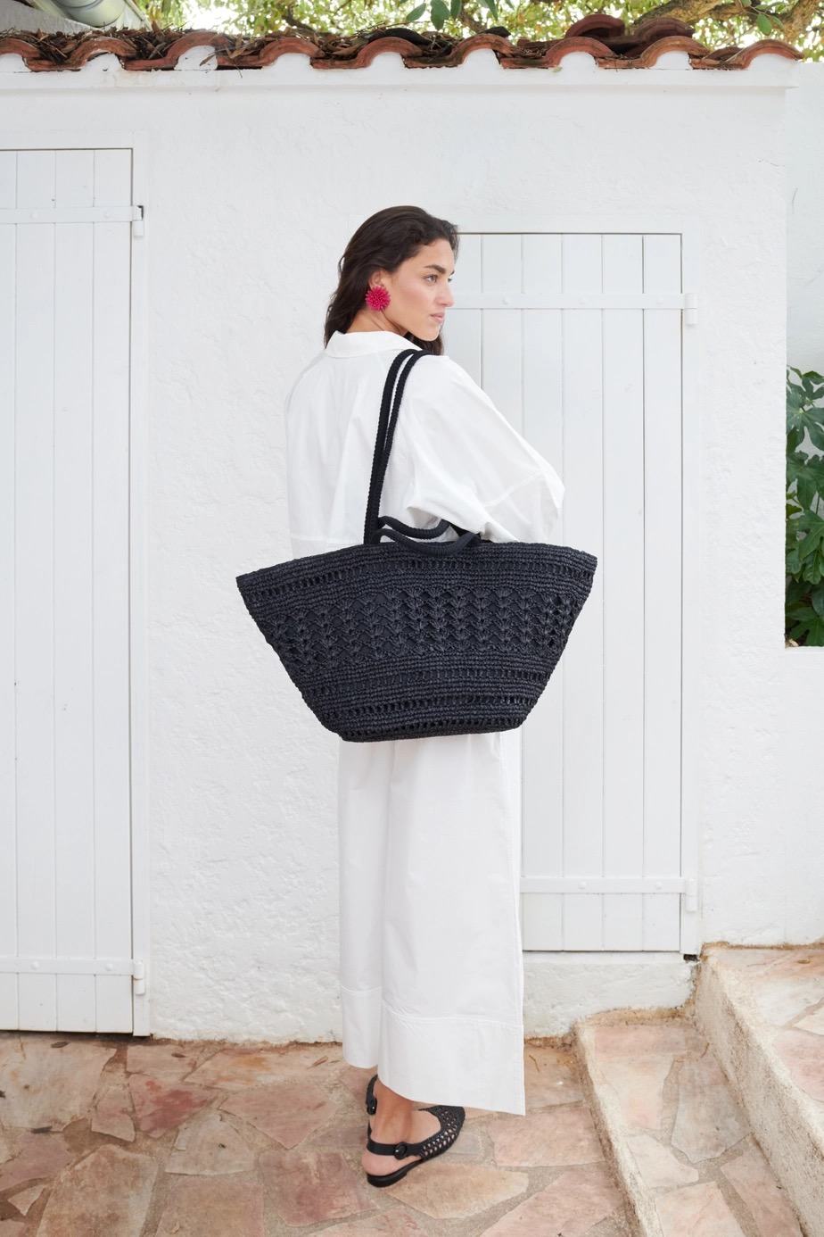 Albertine ist eine Tasche aus Raffia, leicht und großzügig, zeitlos modisch und einfach schön. Albertine macht sich wunderbar als Shopper Alltag leicht im Frühling und Sommer für Ausflüge an den Strand oder schöne Wochenend. Sein strukturiertes Volumen bietet Platz für das Wesentliche. Die ausgestellte Form der Seiten ist elegant und lässig.