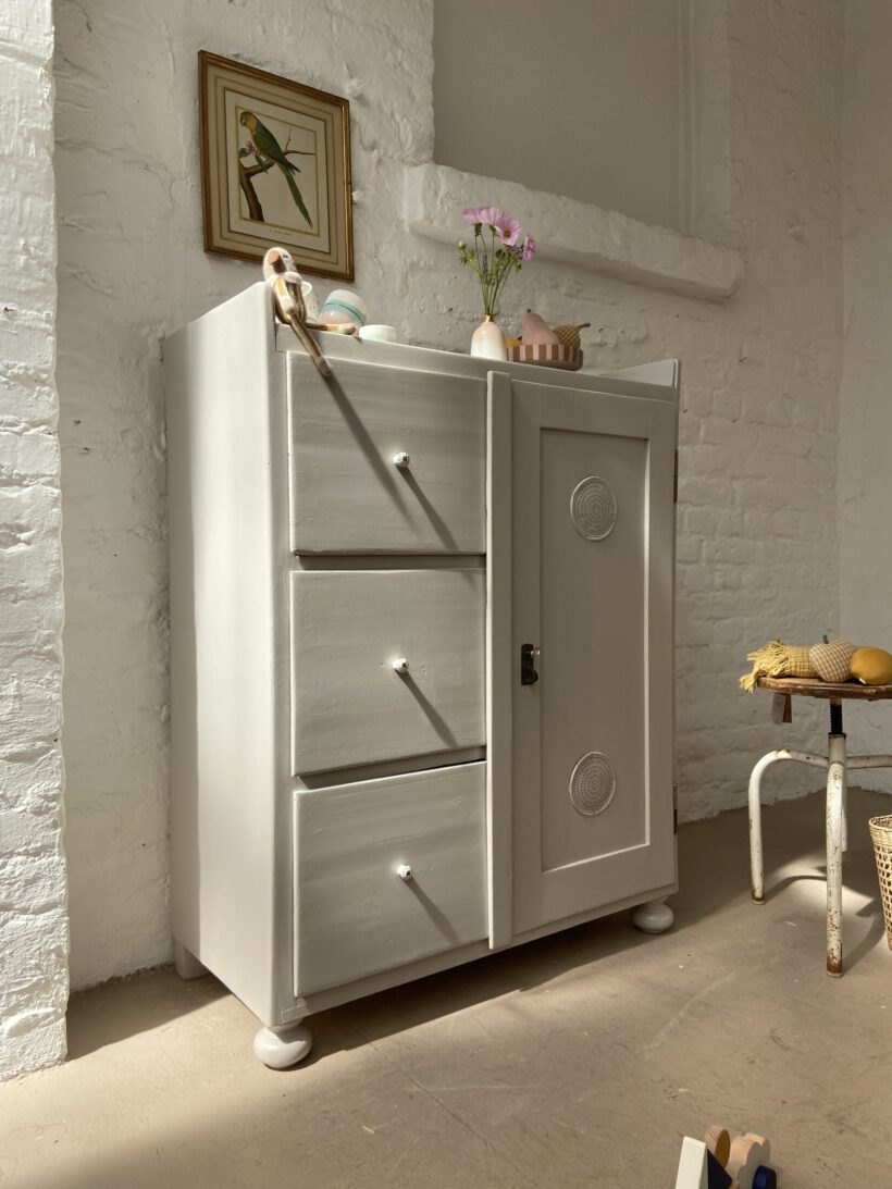 wunderschöner antiker Brotschrank mit drei großen und praktischen und so charmanten Schubladen. Mijo stammt aus Prag, er hat tolle Maße, ist gerade mal 42,5 cm tief. Trotzdem bietet er sehr viel Stauraum und ist damit super praktisch auch in kleinen Räumen. Sein Design bietet sich für so vielseitige Zwecke an: als Kleiderschrank, Vorratsschrank, Spielschrank, im Bad oder Flur…euch fällt bestimmt noch mehr ein. Einfach toll!