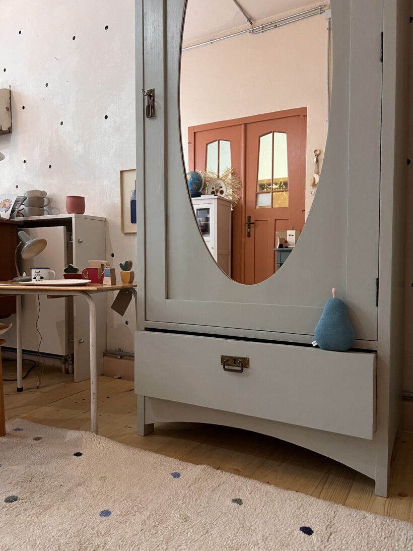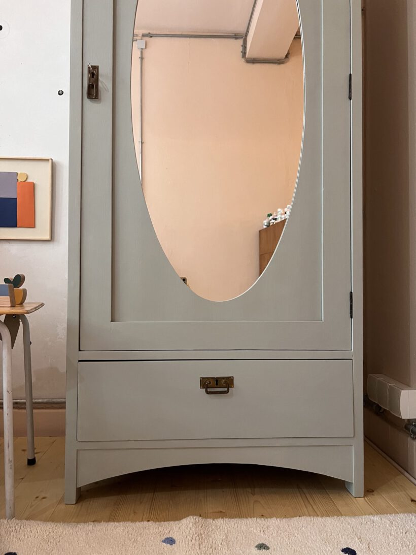 ein wunderschöner antiker schwedischer Kleiderschrank mit ovalem Spiegel in der Tür. Es gibt nicht viel zu Molly zu sagen, außer dass sie einfach nur zauberhaft ist. Wir haben Molly in ein helles blaugrau von Farrow and Ball getaucht. Dafür wurde sie geschliffen, grundiert und zwei mal lackiert. Ein Schlüssel für die Tür ist vorhanden.