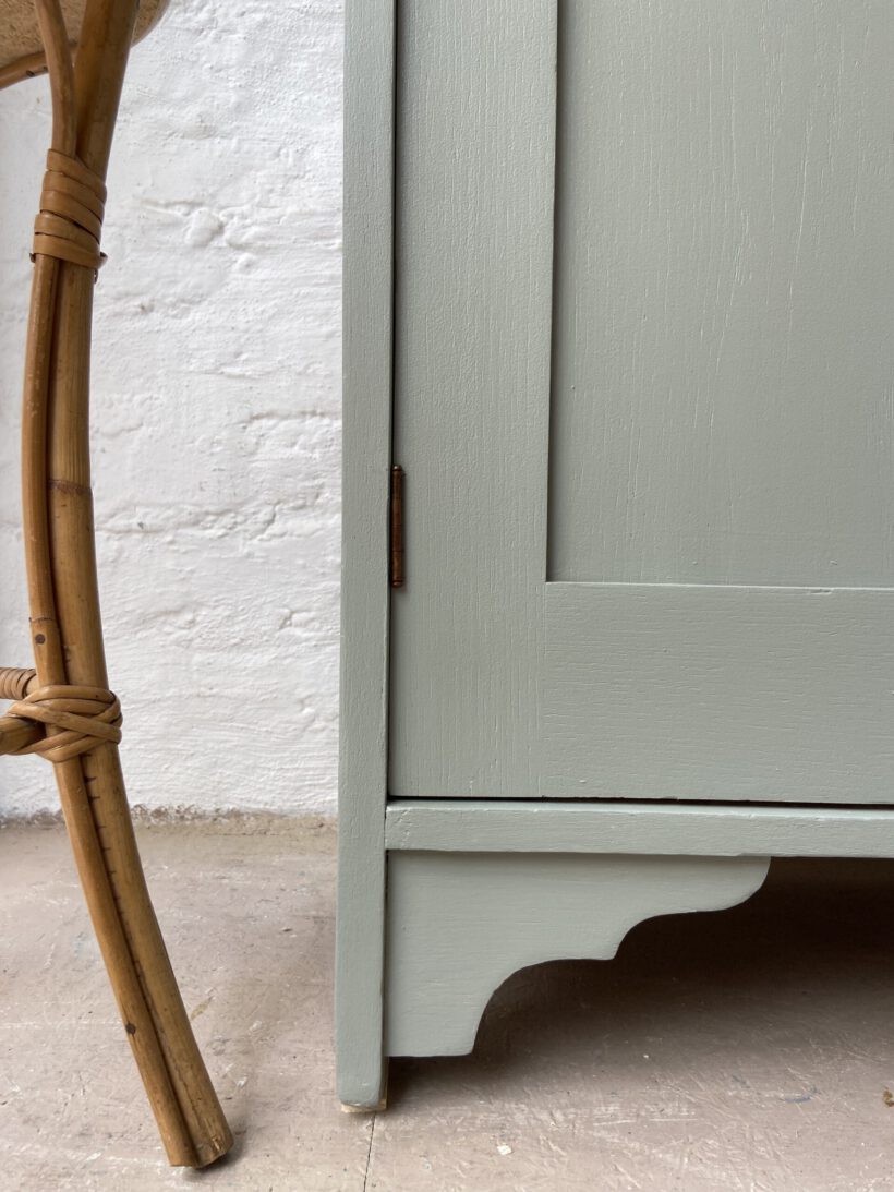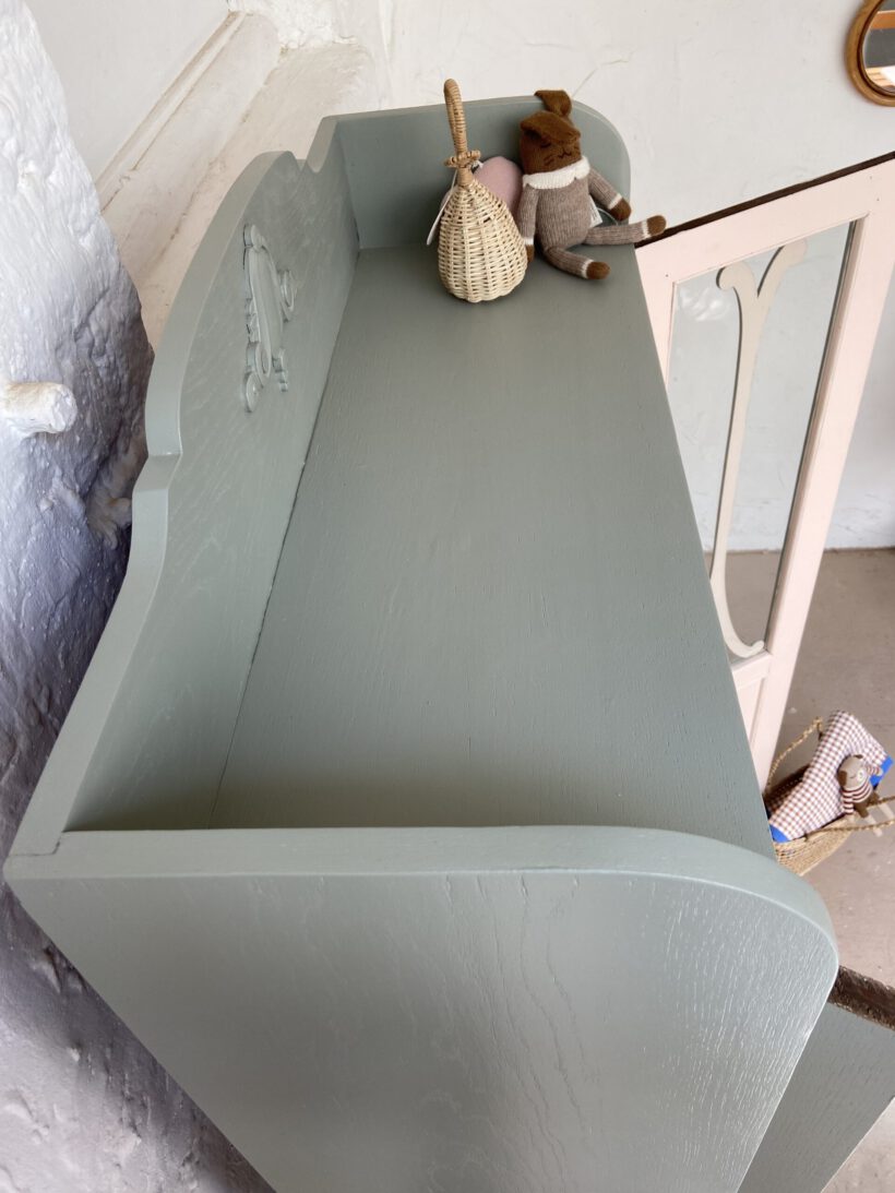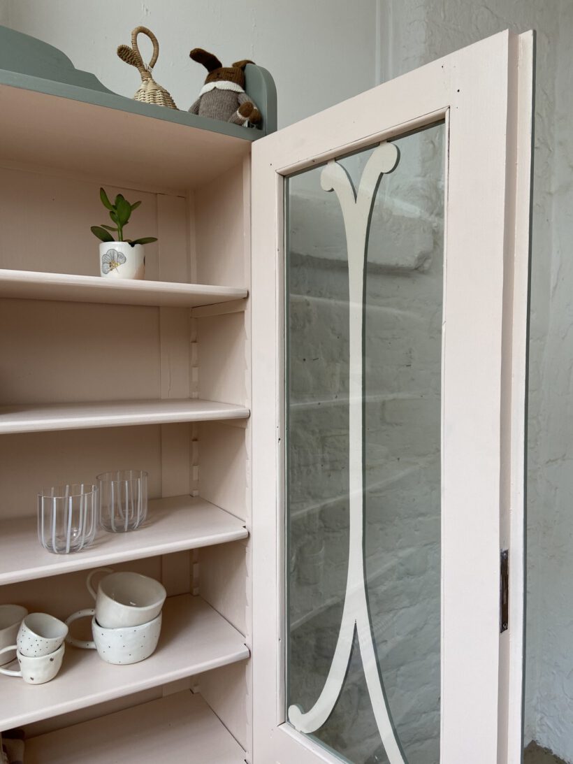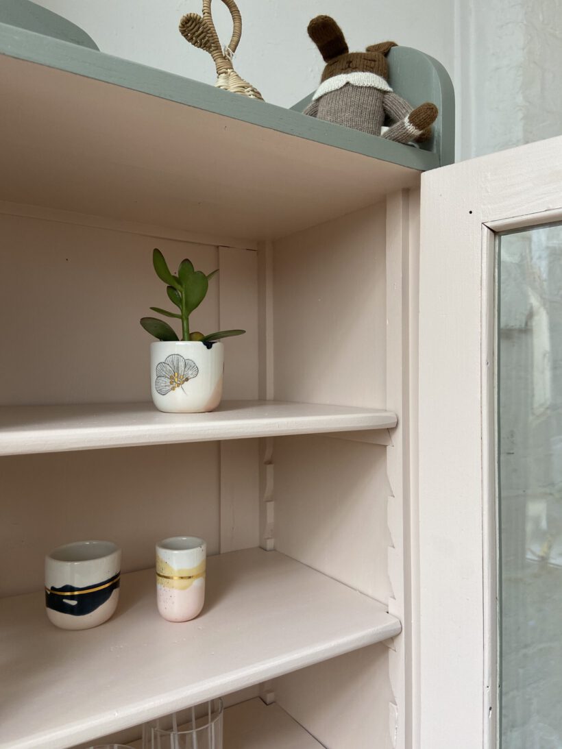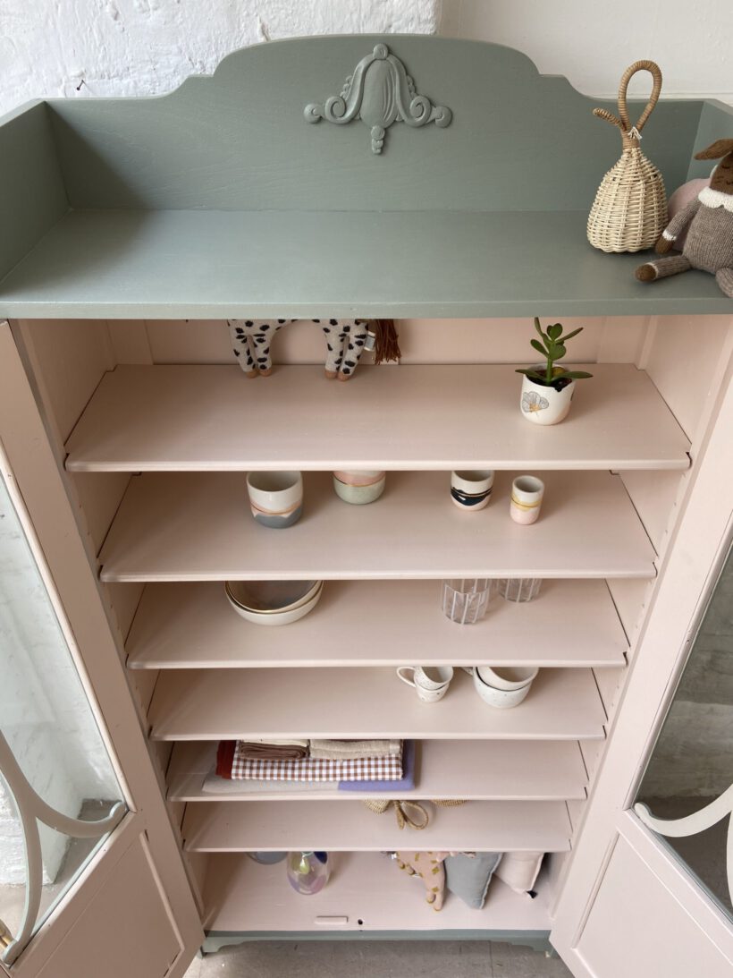 Wir haben Narcisse zweifarbig aufbereitet: in unser Lieblingskombination außen salbeigrün und innen hellrosa von Farrow and Ball.