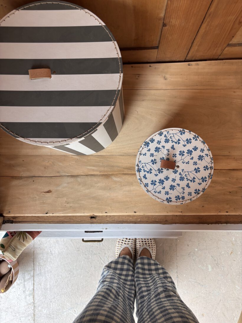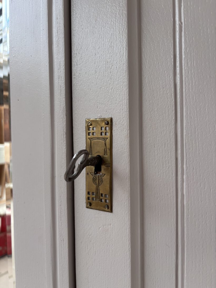 Noémi hat zwei Schlüssel die gut funktionieren und zwei schöne Schubladen. Sie trägt leichte und charmante Spuren der Zeit. Der Spiegel ist noch original und hat einen schönen Facettenschliff. Er hat auch Patina, die das aehen allerdings nicht beeinträchtigt – im Gegenteil es verleiht eine extra Portion Charme.