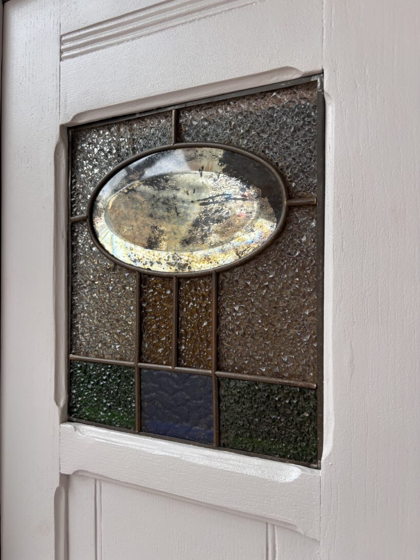 ein Schrank fürs Leben! Noémie ist ein antiker Eichensteckschrank aus Frankreich. Sie trägt zauberhafte antike Fenster in ihren Türen rechts und links. Sie hat ein schönes besonderes Design – kleinere grafische Verzierungen, nicht zu viel, genau richtig für das gewisse etwas;-)