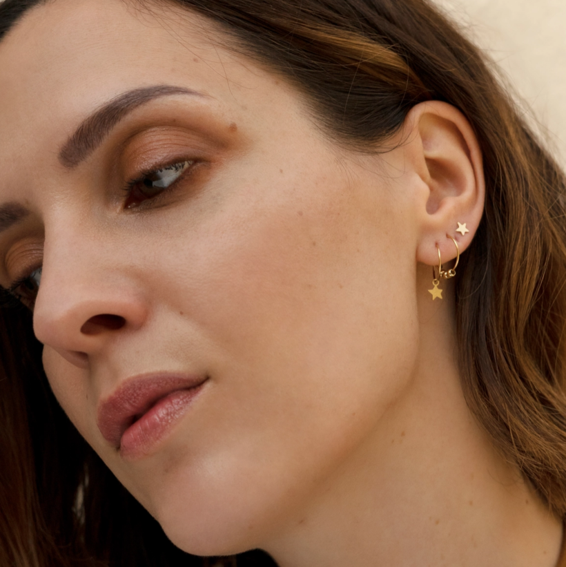 – Creolen aus 24-karätigem vergoldetem Messing Durchmesser der Reifen: 1,2 cm Maße des Sterns: 0,5 x 0,5 cm.