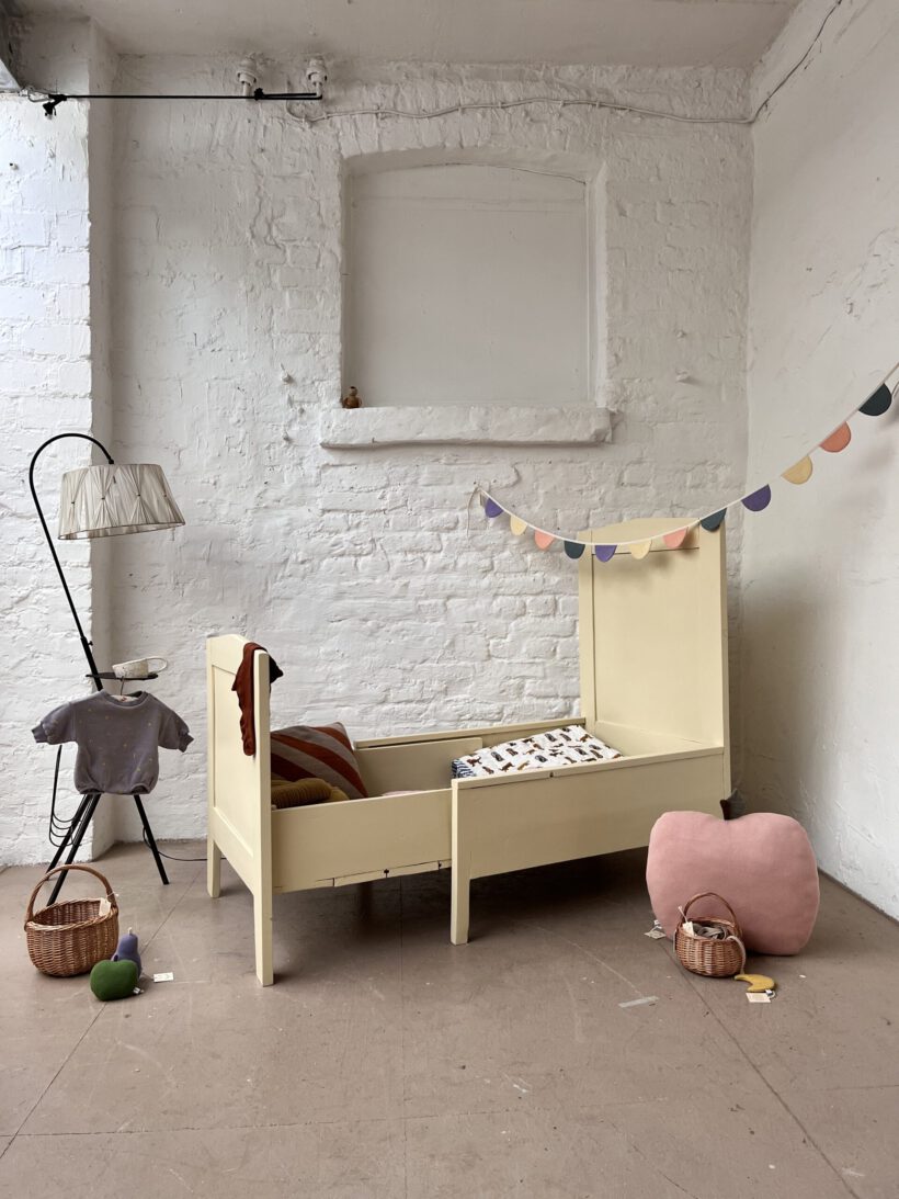 ein wunderschönes antikes Bett aus Schweden. Das besondere an den schwedischen Betten für Kinder ist, dass sie in der Größe und Länge verstellbar sind, durch ein einfaches Schiebesystem. Oliv ist also in mehren Längen nutzbar. Man kann es ausziehen bis zu einer Länge von 180cm. Das macht Oliv nicht nur unglaublich charmant und besonders, sondern auch sehr praktisch, denn sie wächst mit dem Kind mit;-)