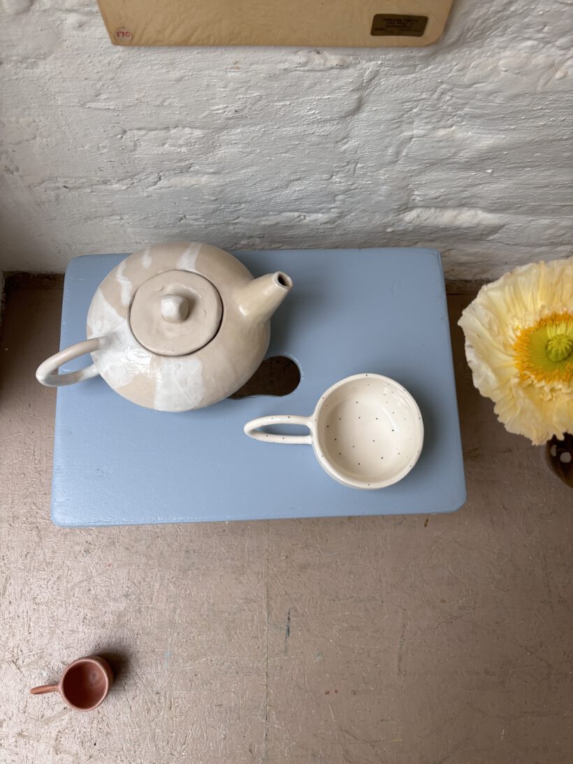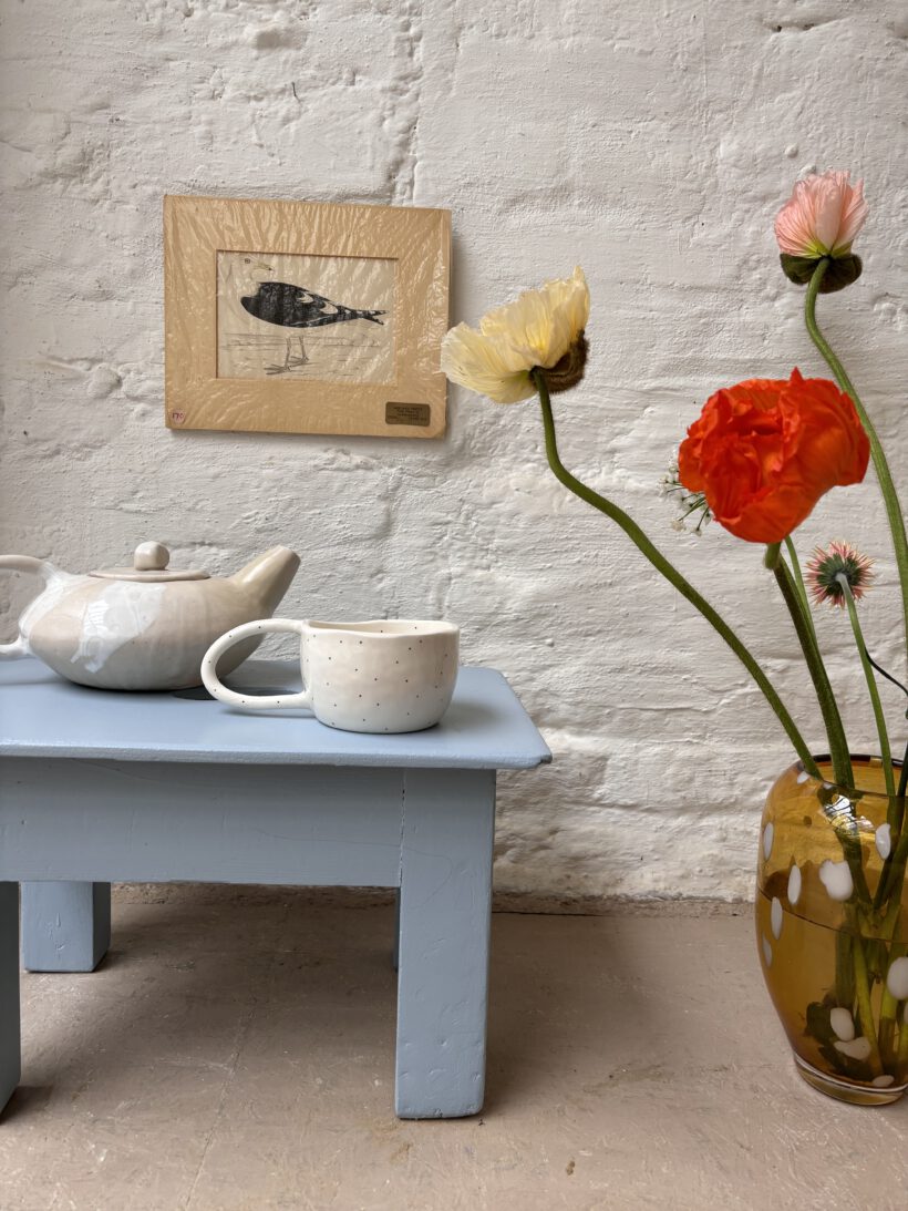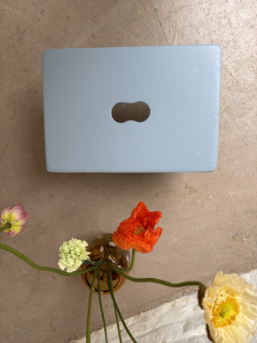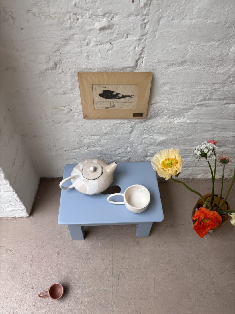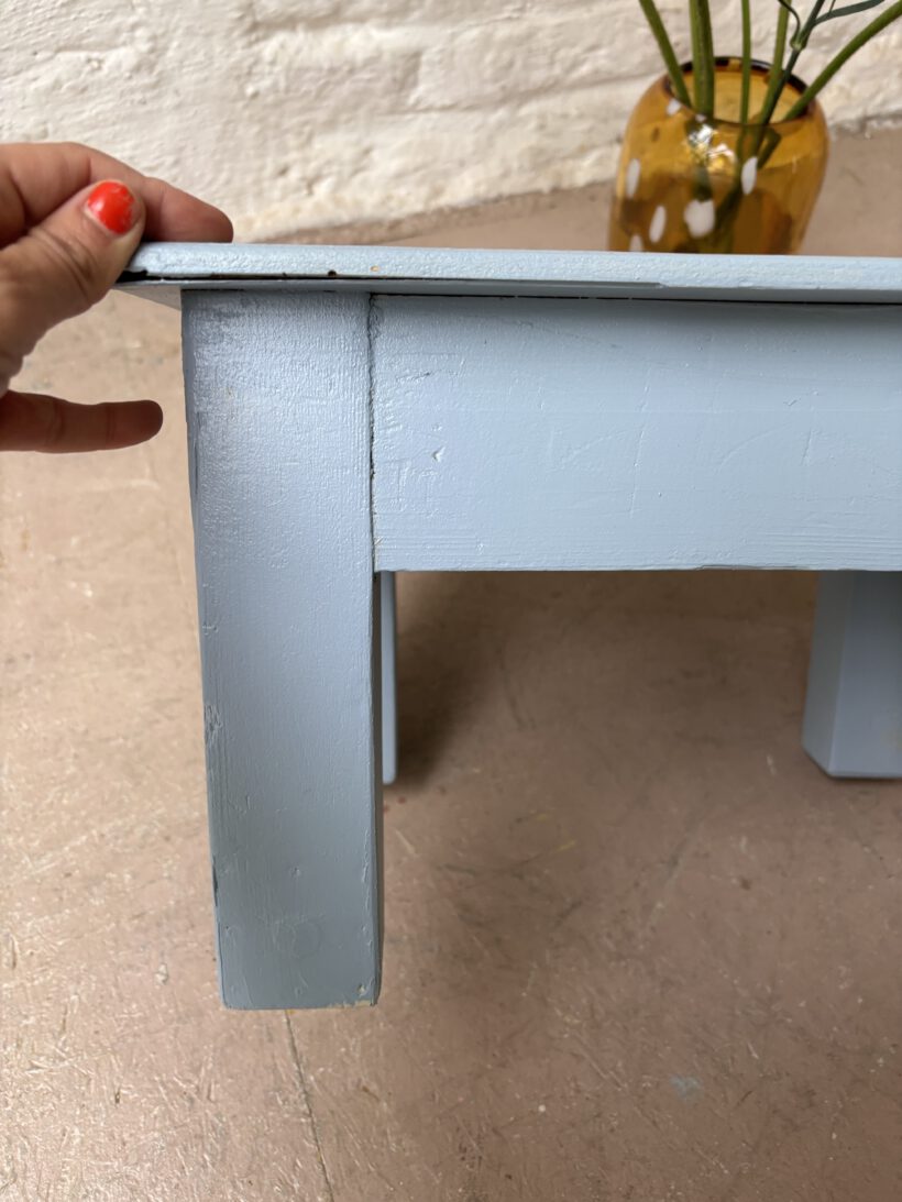 Otto wurde von uns restauriert: das Holz ausgebessert und geschliffen, grundiert und zwei Mal lackiert in einem wunderschönen mittelblau von Farrow and Ball.