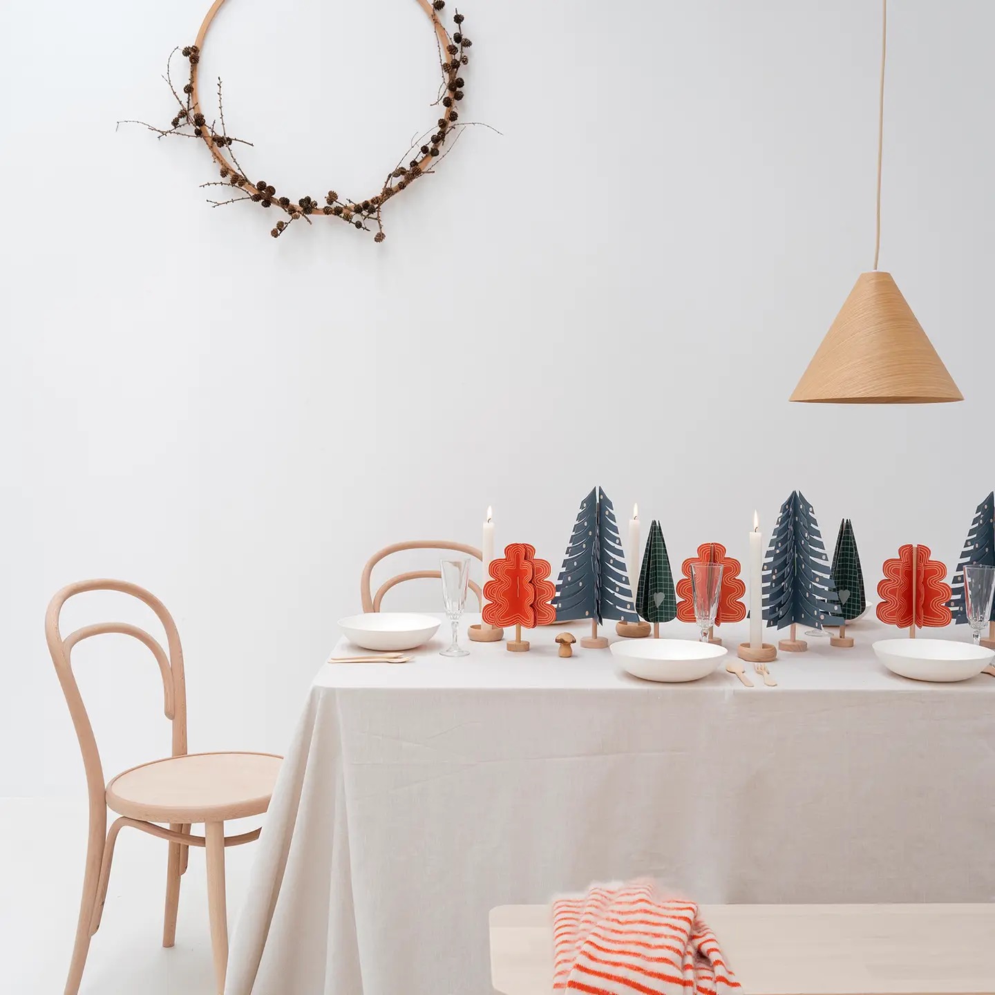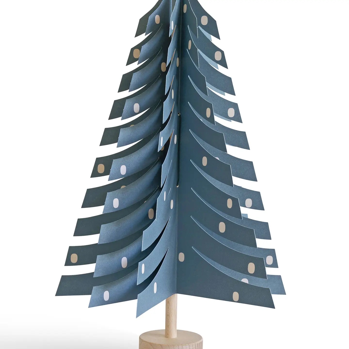 Konstruiere diesen 30 cm hohen Papier-Tannenbaum in weniger als 10 Minuten. Der helle Buchenholzstamm hat Löcher, durch die die Zweige gefädelt werden. Du musst nichts schneiden: Alle Teile sind vorgestanzt, gerippt und perforiert. Und natürlich ist auch Draht enthalten, um die Teile zusammenzubauen.