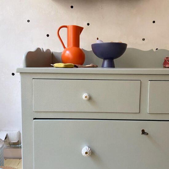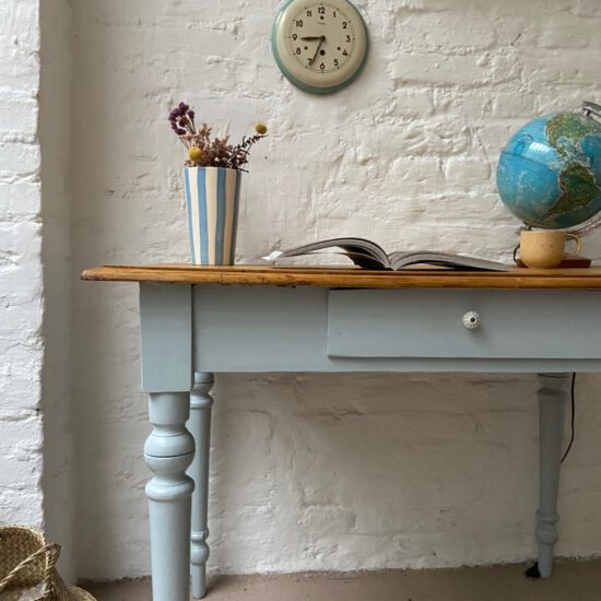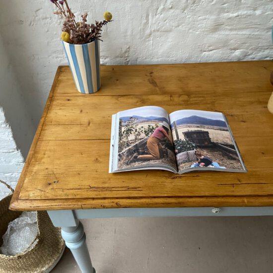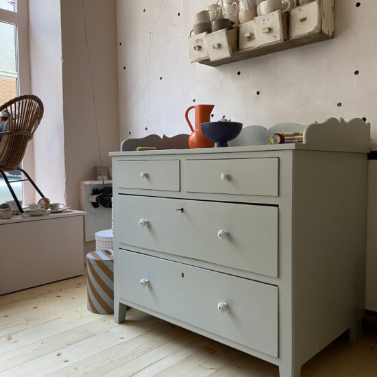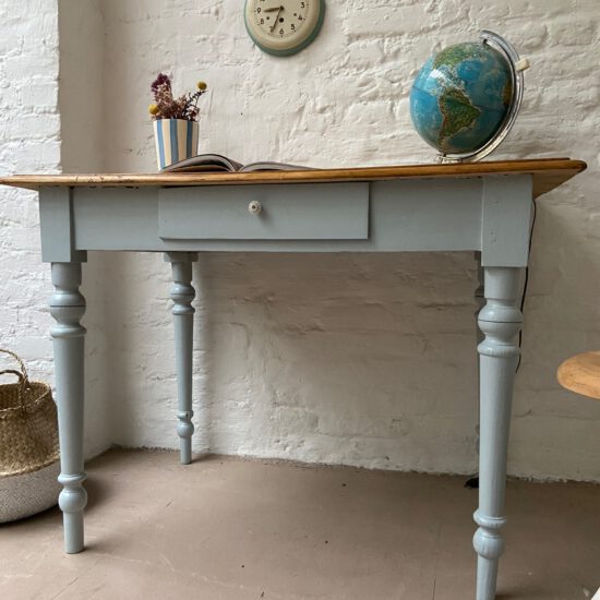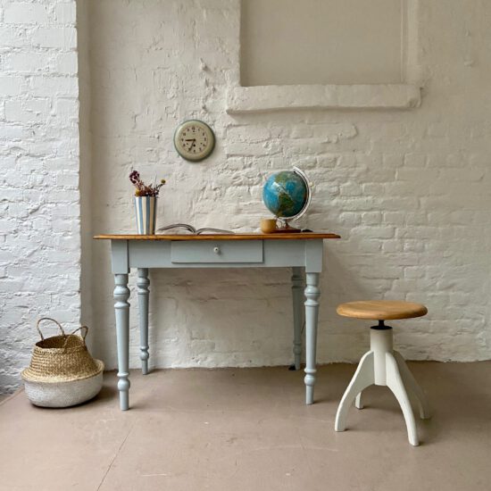 Wir haben Paulette restauriert, ihr Holz geschliffen und mit Leinöl versiegelt. Das Gestell ist ebenfalls mit Leinöl versiegelt. So bleibt es lange erhalten.