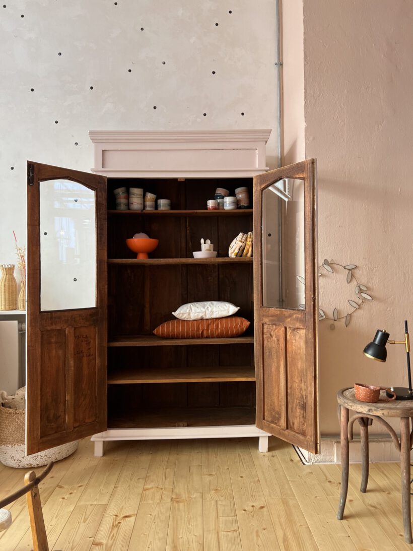 Diese Lady hier, ist schon stolze 130 Jahre und ein traumhaftes Einzelstück. Die alte Bauernvitrine ist aus Massivholz. Sie hat ein besonderes Design und wurde vor vielen Jahren auf Mass geschreinert. Ihr Erscheinungsbild und ihr Holz sprießt nur so vor vor Charme. Und sie hat traumhafte Ecken uns Kanten. Sie hat Patina, das Holz hat gelebt und lebt – für alle charmanten Alterspuren, siehe Fotos;-)
