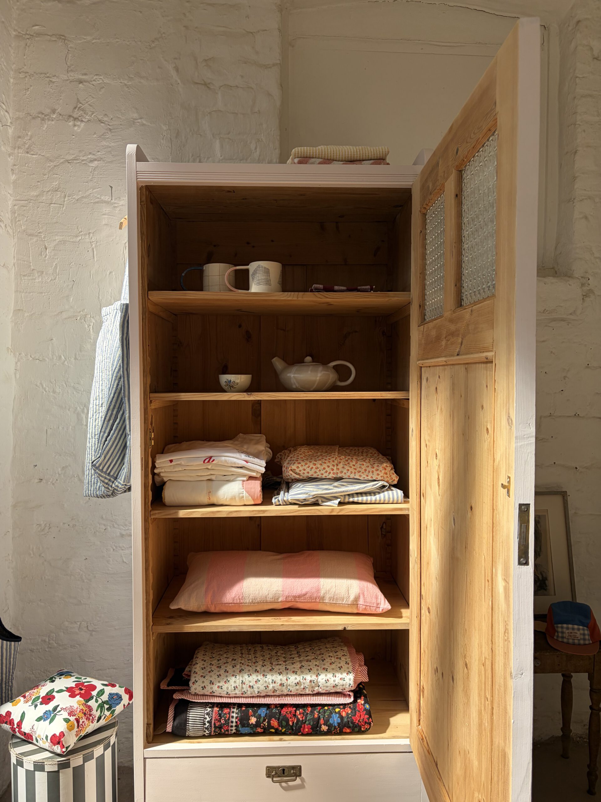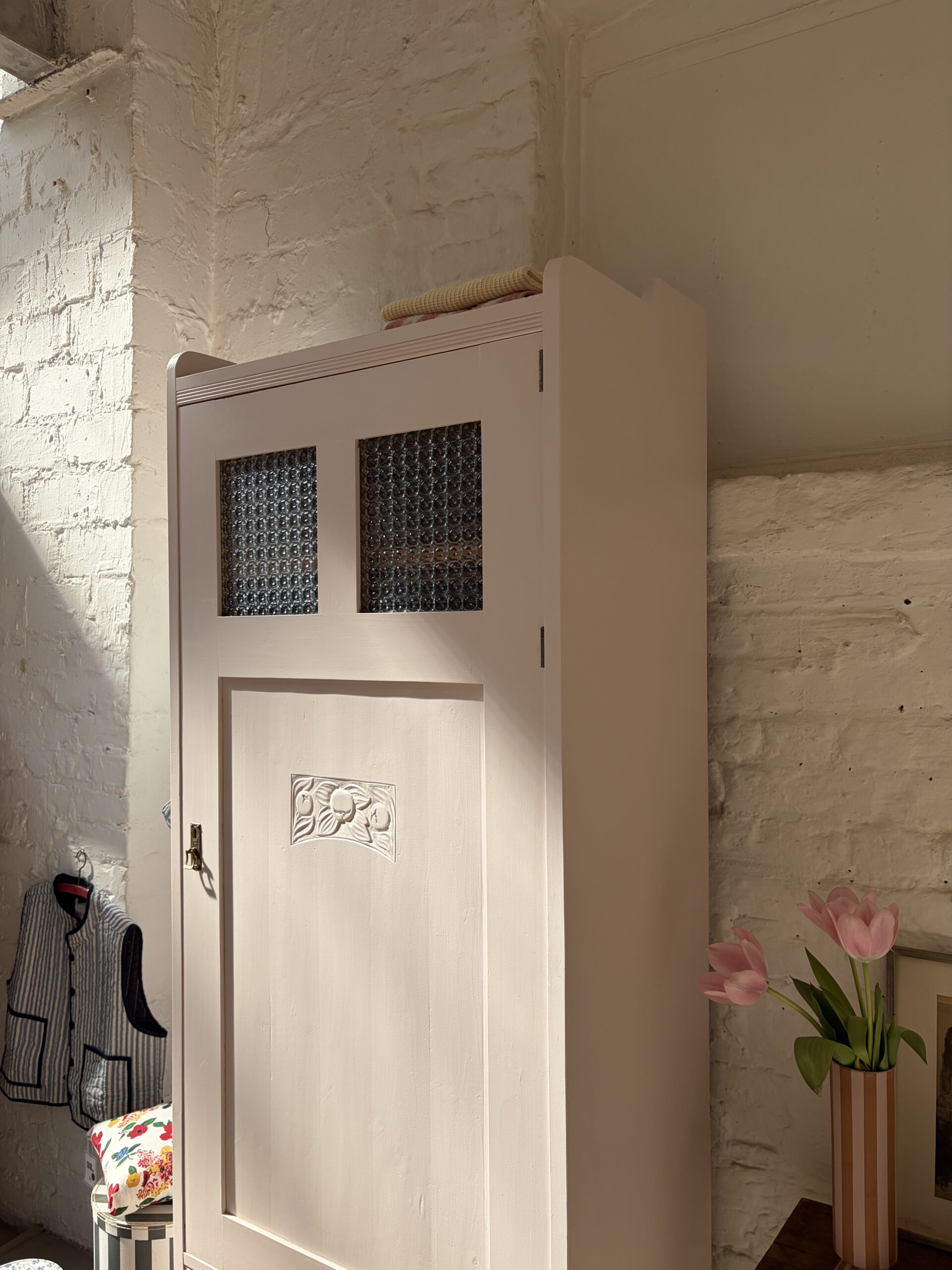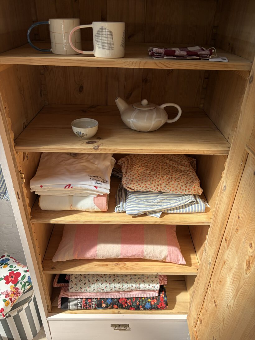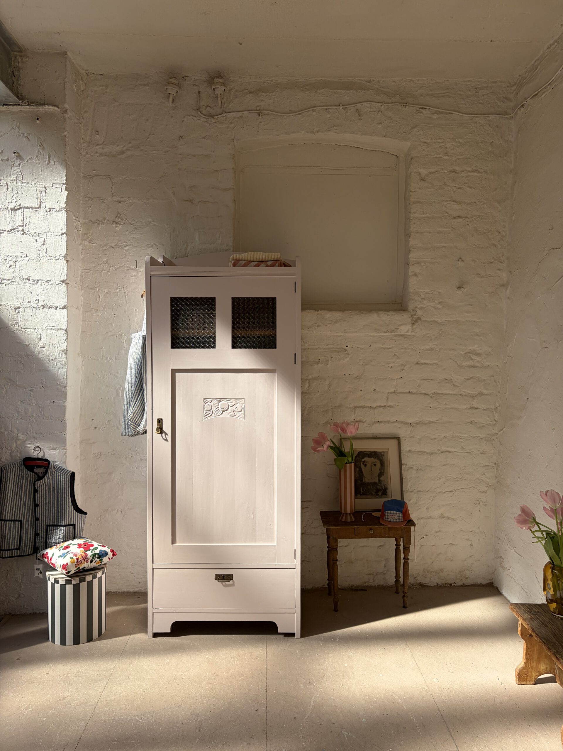 Wir haben Rune restauriert, ihr Holz und einige Stellen repariert, grundiert und drei Mal lackiert in unserm Lieblings Rosa von Farrow and Ball. Innen hat sie fünf Legefächer und ist sehr geräumig. Ihr Holz hat Patina und zeigt wunderschöne Spuren der Zeit, die ihren ganz individuellen Charme ausmachen.