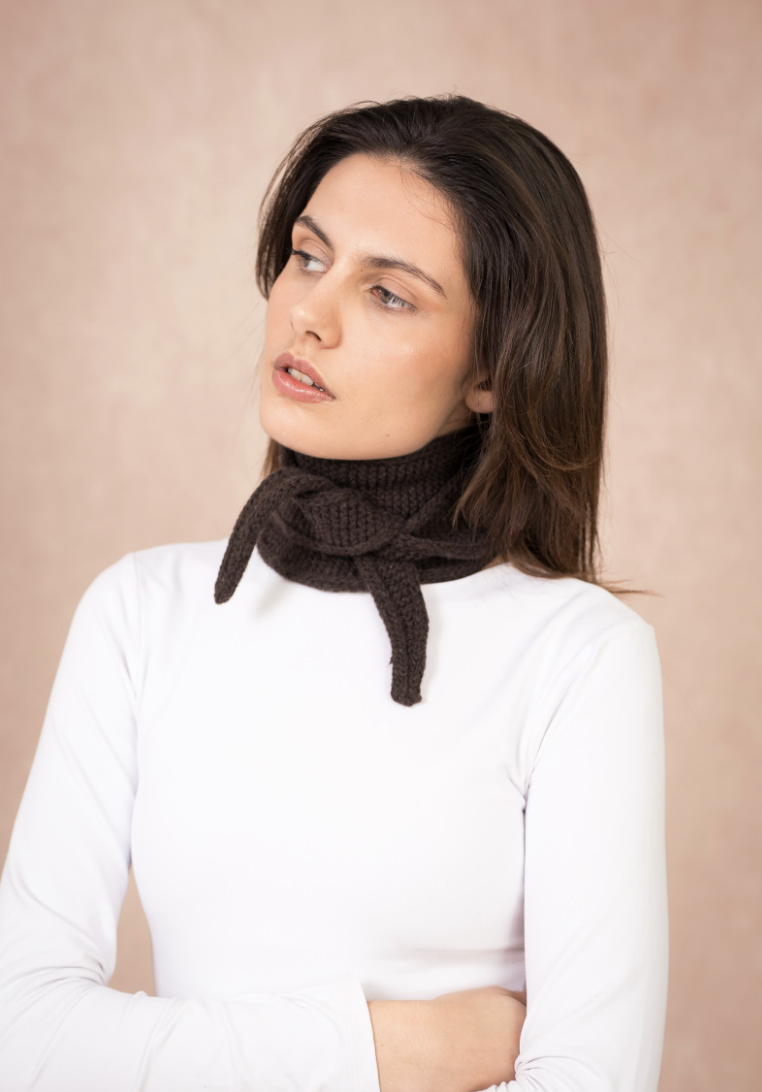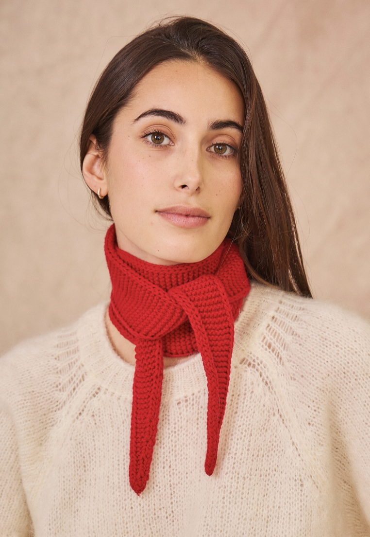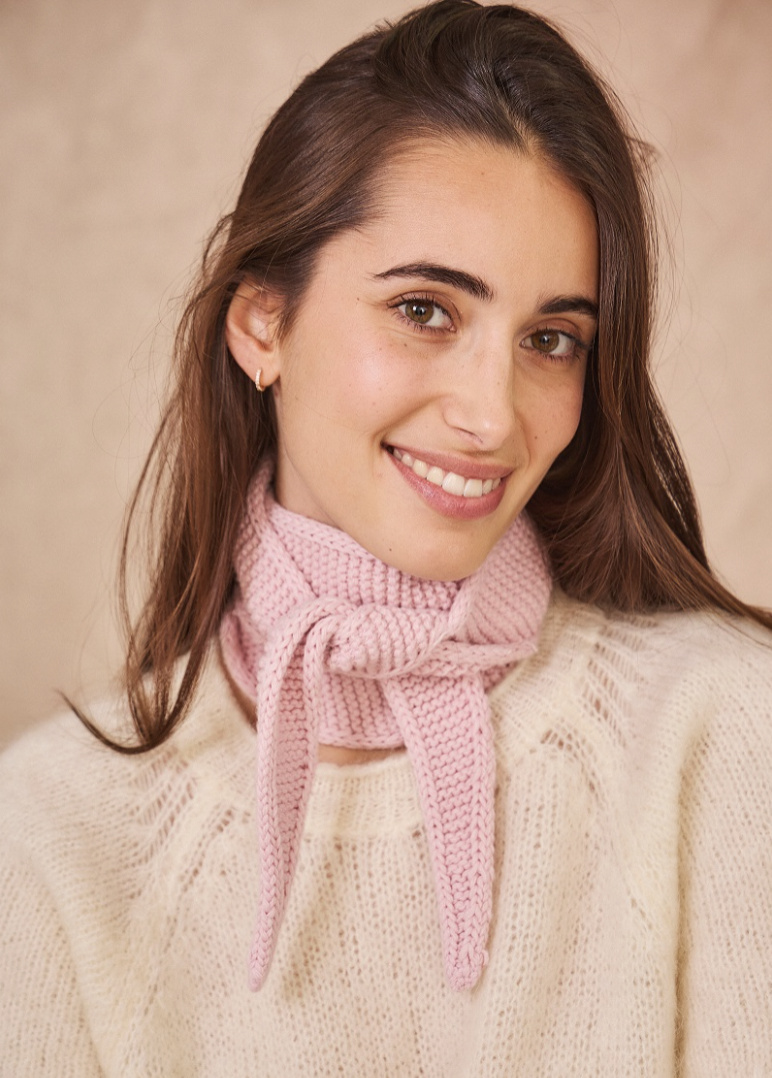 Sophie ist ein kleiner dreieckiger Schal, das perfekte Strickaccessoire für die Übergangszeit und den Winter, leicht und angenehm zu tragen.