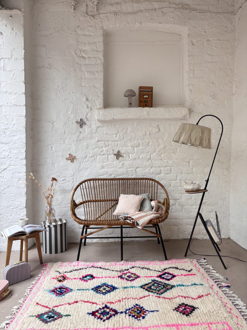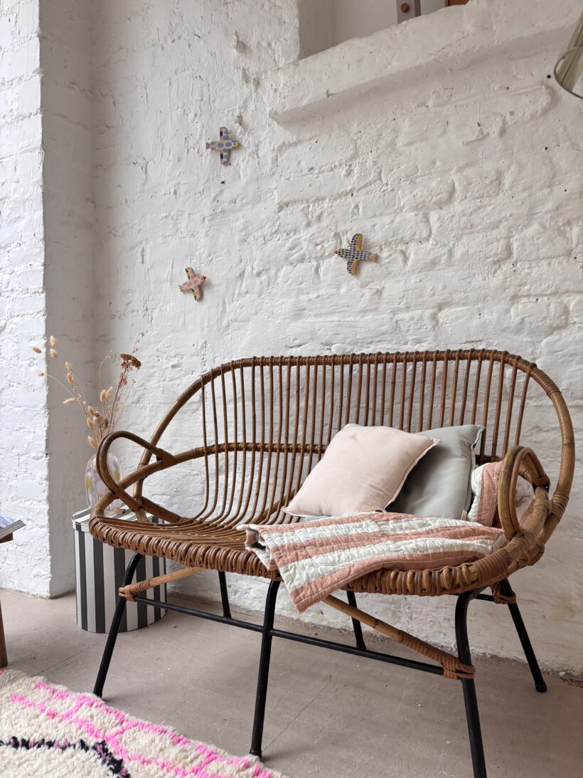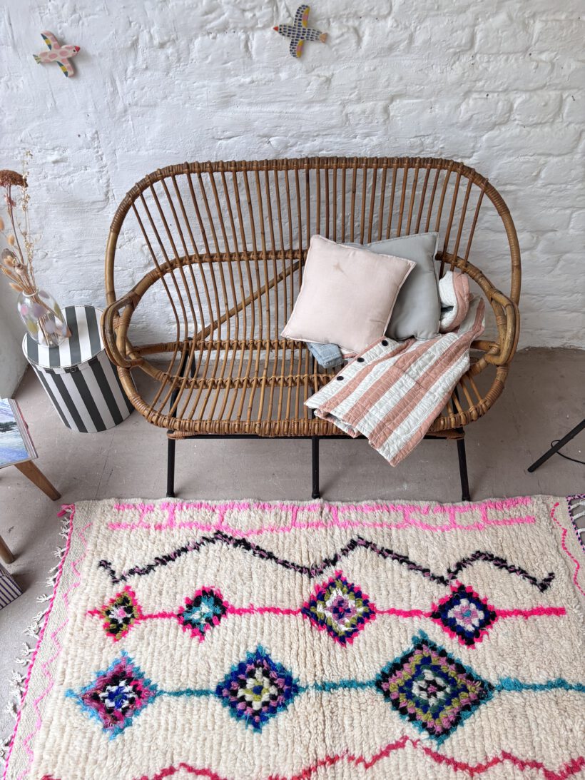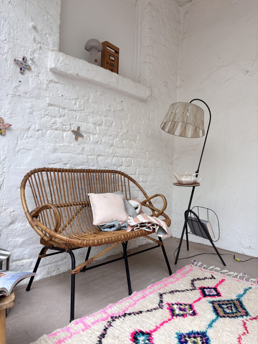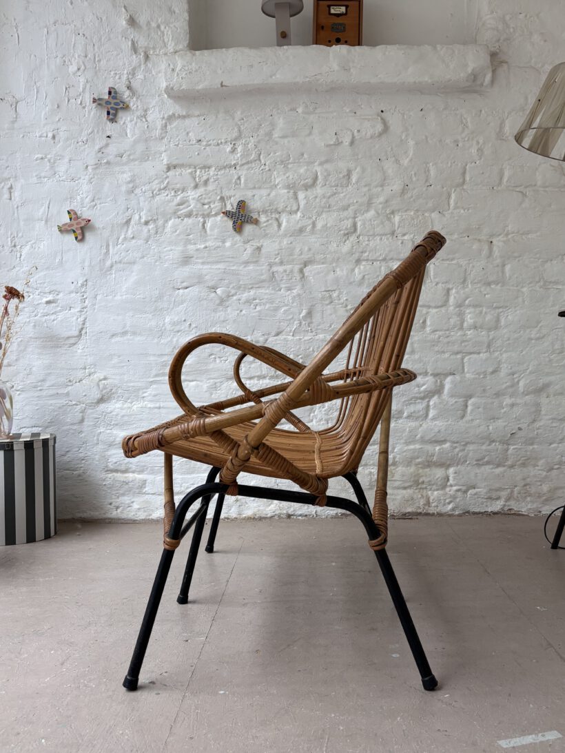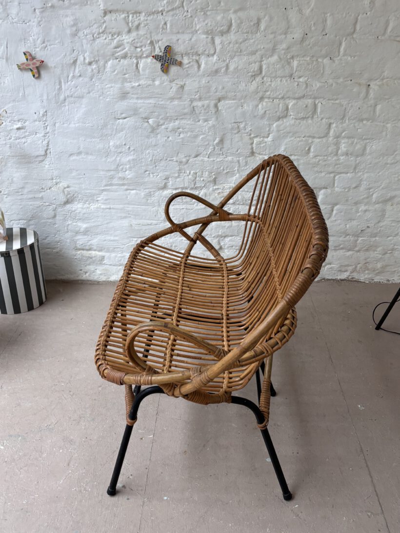 Wunderschön und selten sind die Armlehnen. Zudem ist Thibault sehr gut erhalten. Das rattan ist einwandfrei in Takt und hat einen schönen Honig Farbton. Thibault bringt Gemütlichkeit in dein Zuhause. Besonders steht im ein hübsches Lammfell oder eine weiche Decke und ein hübscher Teppich;-)