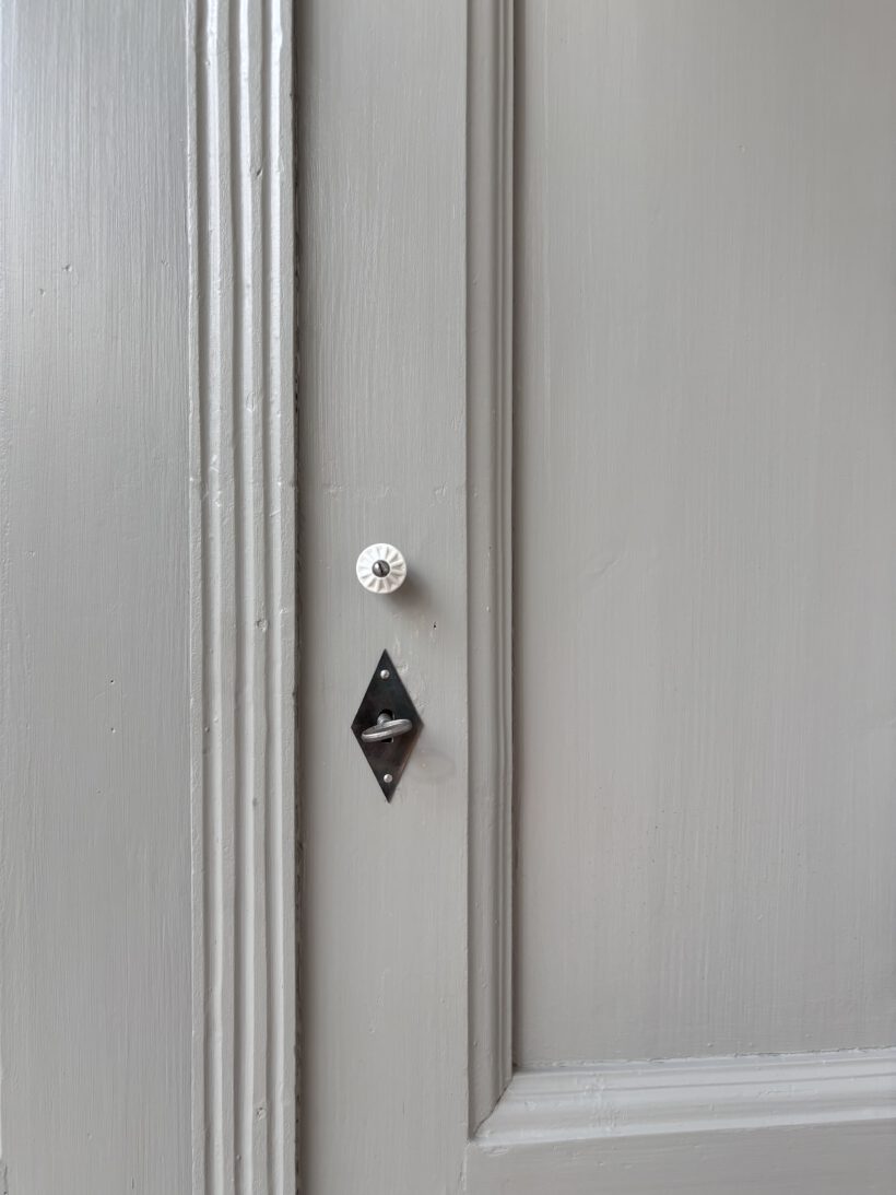 Die rechte Tür hat sich mit den jähren leicht gebeugt. Sie schließt wunderbar. Man bemerkt es nur wenn man ganz genau seitlich von links hinschaut, dass sie unten nicht ganz bündig schließt – siehe Fotos.