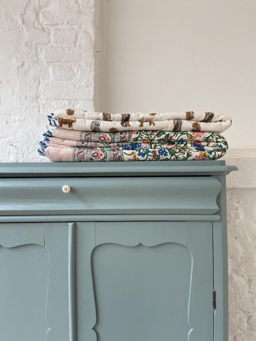 Tore hat von uns unser Lieblingsblau von Farrow and Ball bekommen. Dafür wurde sein Eichenholz komplett geschliffen, grundiert und zwei Mal lackiert.