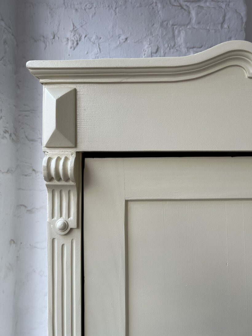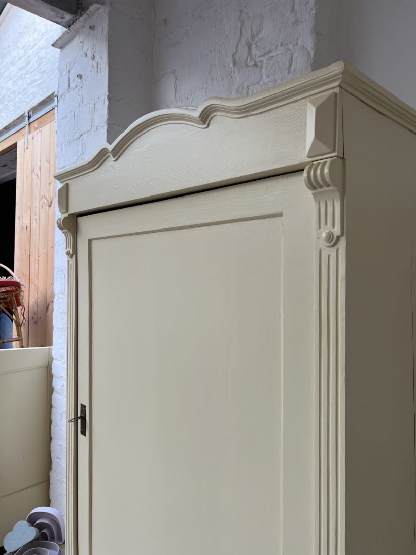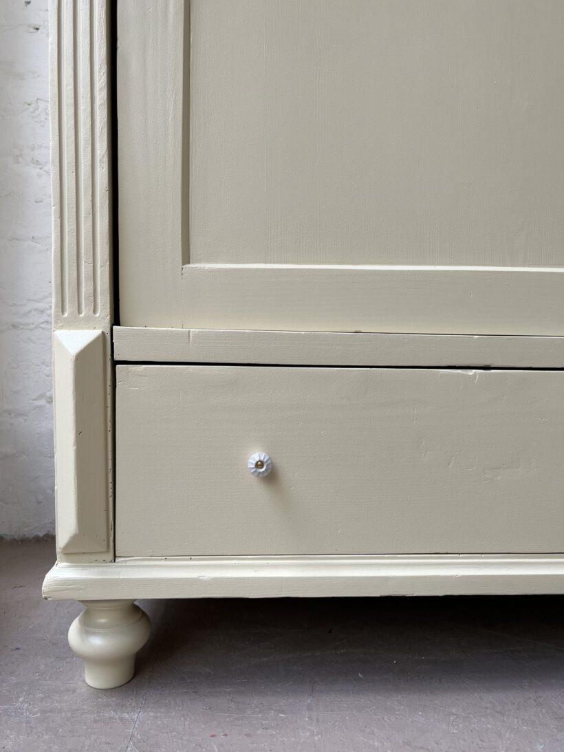 dieser wunderhübsche alte Kleiderschrank hat es uns ganz schön angetan. Es war mal wieder Liebe auf den ersten Blick mit Willi, auch wenn er ein ganz schön hartnäckiger Kandidat in Sachen Restauration war. Sein Zustand war leider sehr schlecht. Er brauchte viel Liebe und Reparaturen. Jetzt geht es ihm wieder gut und die liebevollen Reparaturen haben ihm eine Extraportion Charme geschenkt;-)