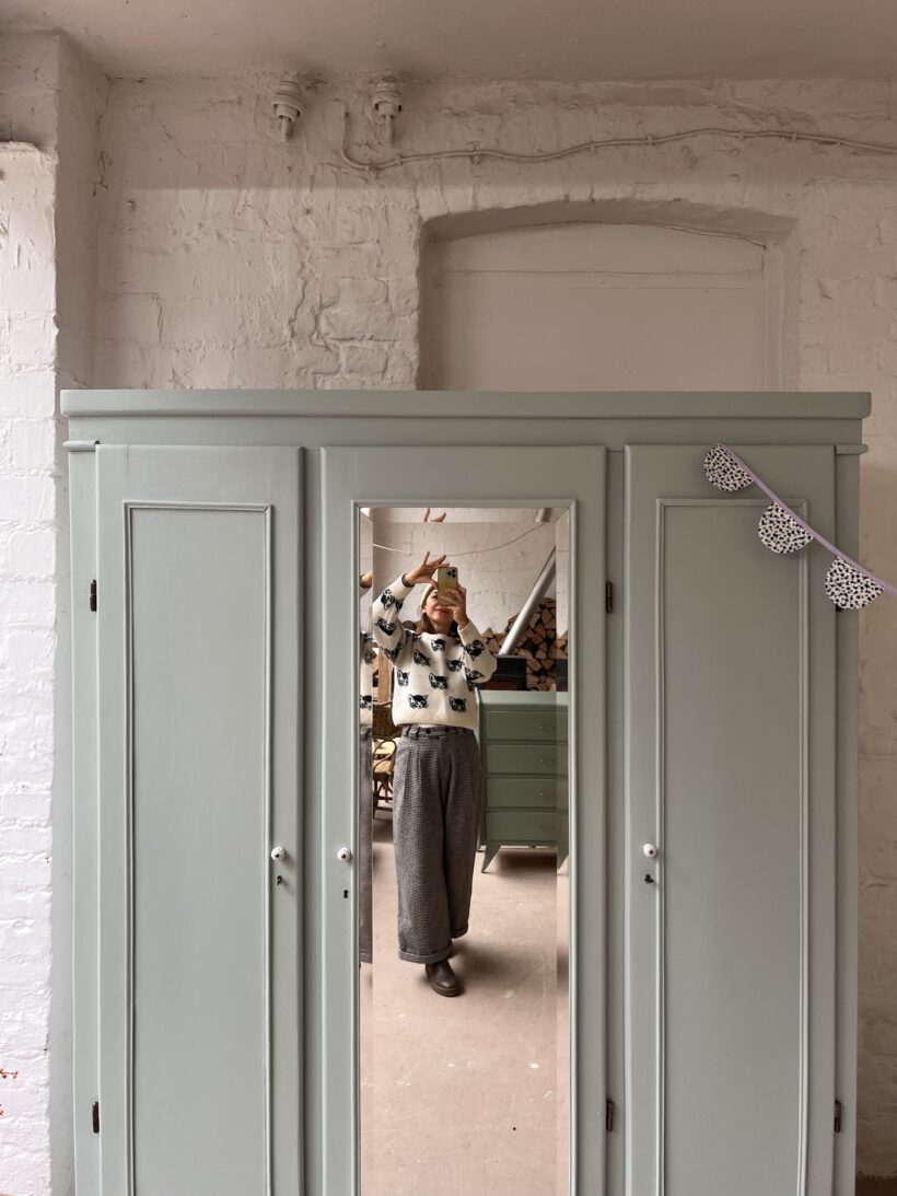 Wir haben Zabel außen eine neue Farbe geschenkt, er ist restauriert, grundiert und zwei mal lackiert in einem wunderschönen graublau von Farrow and Ball Farben.